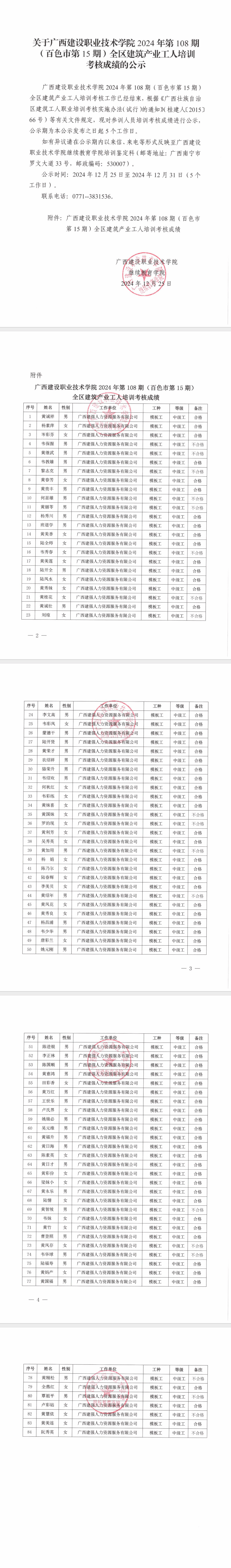 培训信息 当前位置: 首页 >> 培训信息 >> 正文 关于开云线上平台_开云(中国)2024年全区开云线上平台_开云(中国)产业工人第108期(百色市第15期)培训考核成绩的公示 发布日期:2024-12-25 点击: 附件【关于开云线上平台_开云(中国)2024年全区开云线上平台_开云(中国)产业工人第108期(百色市第15期)培训考核成绩的公示.pdf】已下载次