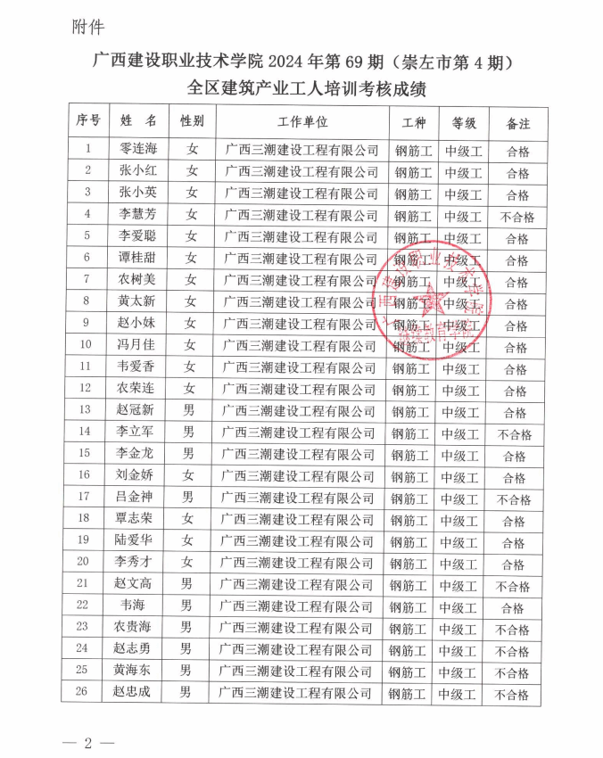 培训信息 当前位置: 首页 >> 培训信息 >> 正文 关于开云线上平台_开云(中国)2024年全区开云线上平台_开云(中国)产业工人第69期(崇左市第4期)培训考核成绩的公示 发布日期:2025-01-06 点击: 附件【关于开云线上平台_开云(中国)2024年全区开云线上平台_开云(中国)产业工人第69期(崇左市第4期)培训考核成绩的公示.pdf】已下载次