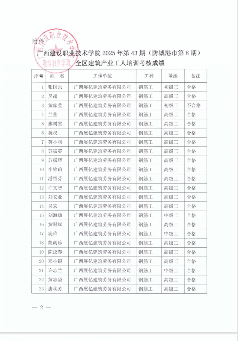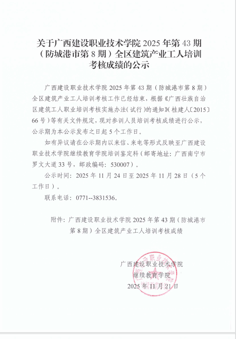 培训信息 当前位置: 首页 >> 培训信息 >> 正文 关于开云线上平台_开云(中国)2025年全区开云线上平台_开云(中国)产业工人第43期(防城港市第8期)培训考核成绩的公示 发布日期:2025-11-21 点击: 附件【关于开云线上平台_开云(中国)2025年全区开云线上平台_开云(中国)产业工人第43期(防城港市第8期)培训考核成绩的公示.pdf】已下载次