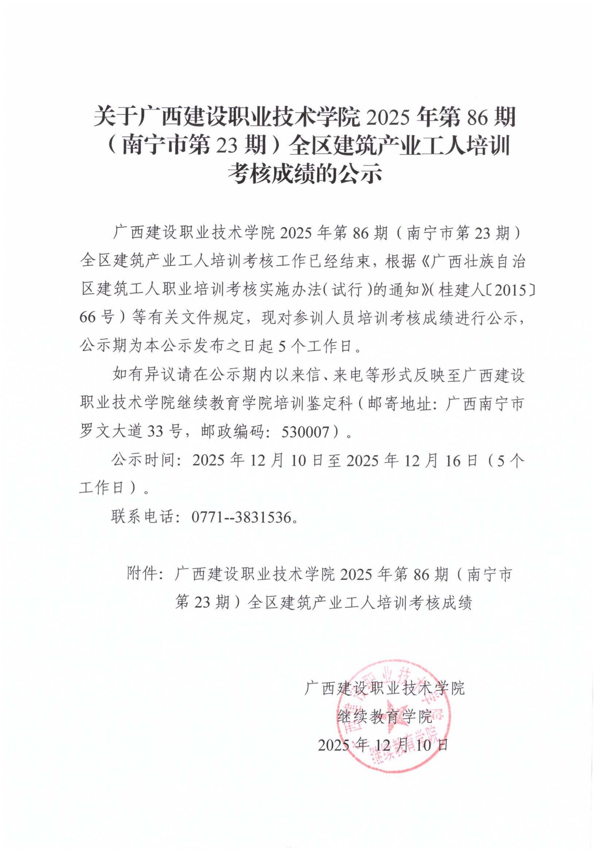 培训信息 当前位置: 首页 >> 培训信息 >> 正文 关于开云线上平台_开云(中国)2025年第86期(南宁市第23期)全区开云线上平台_开云(中国)产业工人培训考核成绩的公示 发布日期:2025-12-10 点击: