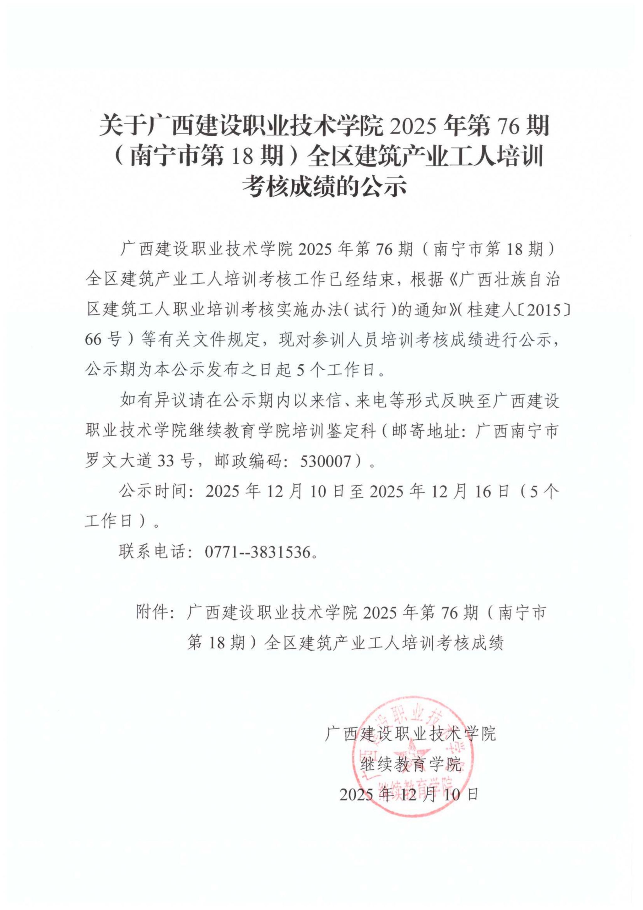 培训信息 当前位置: 首页 >> 培训信息 >> 正文 关于开云线上平台_开云(中国)2025年第76期(南宁市第18期)全区开云线上平台_开云(中国)产业工人培训考核成绩的公示 发布日期:2025-12-10 点击: