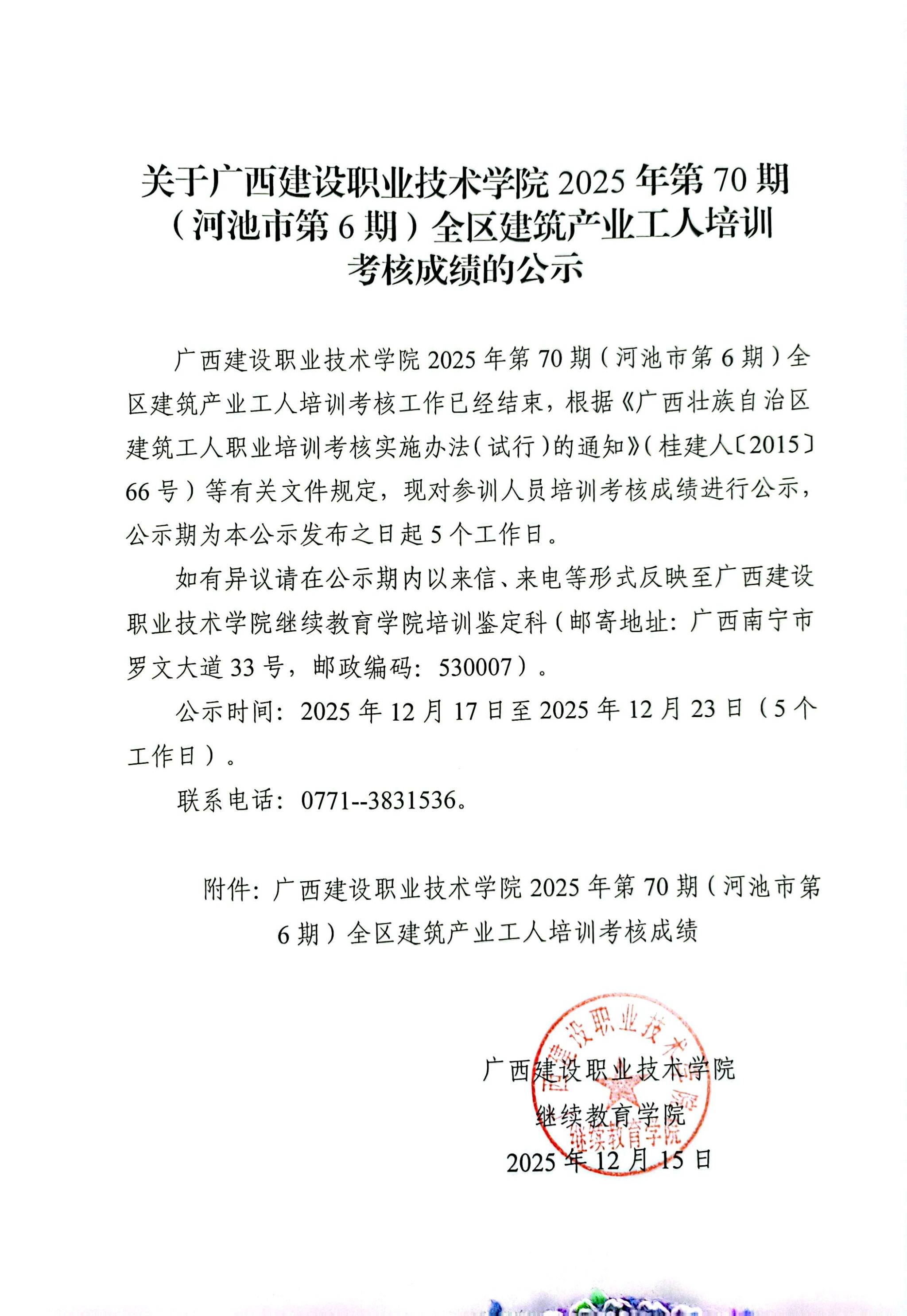 培训信息 当前位置: 首页 >> 培训信息 >> 正文 关于开云线上平台_开云(中国)2025年第70期(河池市第6期)全区开云线上平台_开云(中国)产业工人培训考核成绩的公示 发布日期:2025-12-17 点击: 附件【关于开云线上平台_开云(中国)2025年第70期(河池市第6期)全区开云线上平台_开云(中国)产业工人培训考核成绩的公示.pdf】已下载次