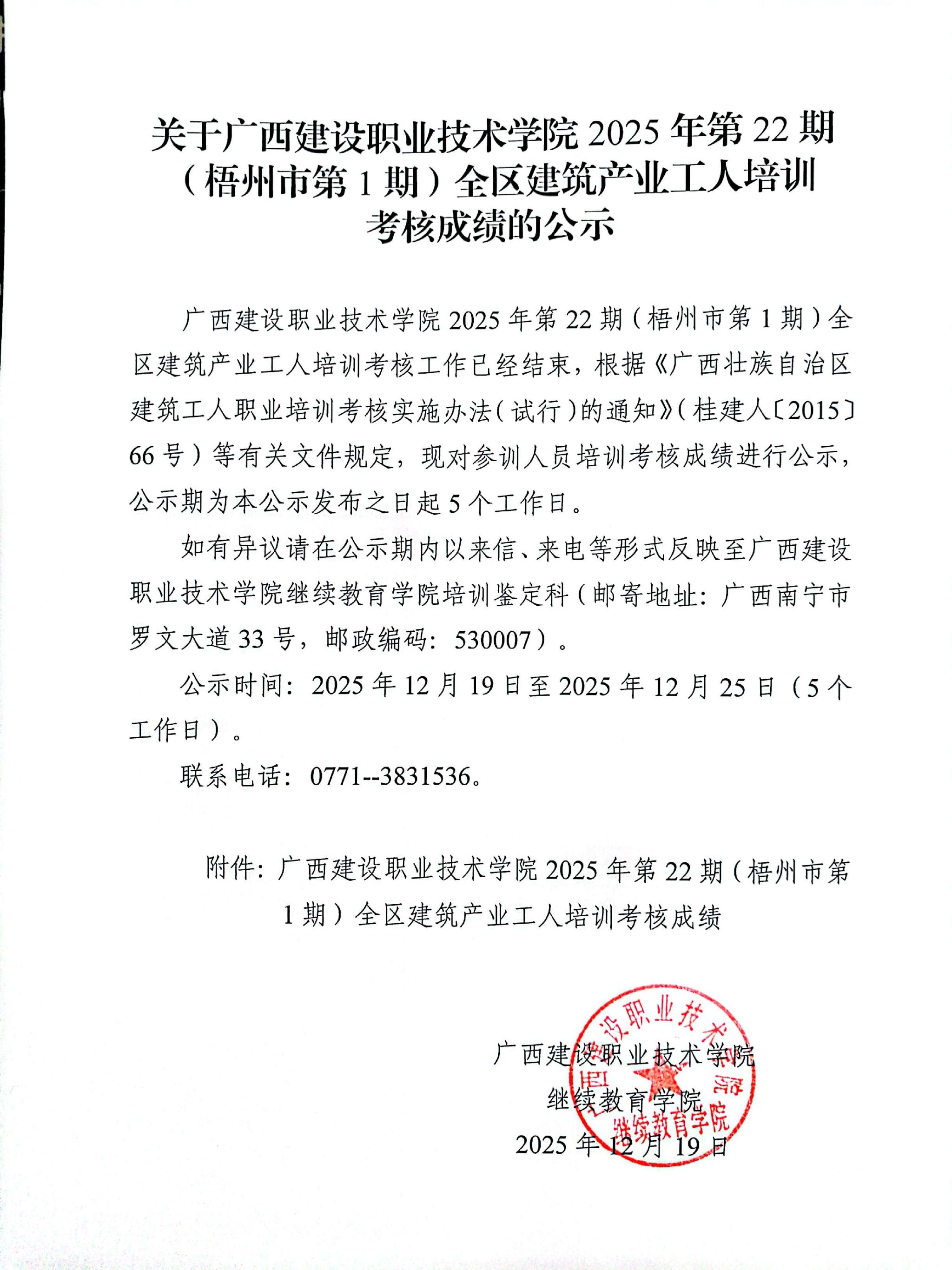培训信息 当前位置: 首页 >> 培训信息 >> 正文 关于开云线上平台_开云(中国)2025年第22期(梧州市第1期)全区开云线上平台_开云(中国)产业工人培训考核成绩的公示 发布日期:2025-12-23 点击: 附件【关于开云线上平台_开云(中国)2025年第22期(梧州市第1期)全区开云线上平台_开云(中国)产业工人培训考核成绩的公示.pdf】已下载次