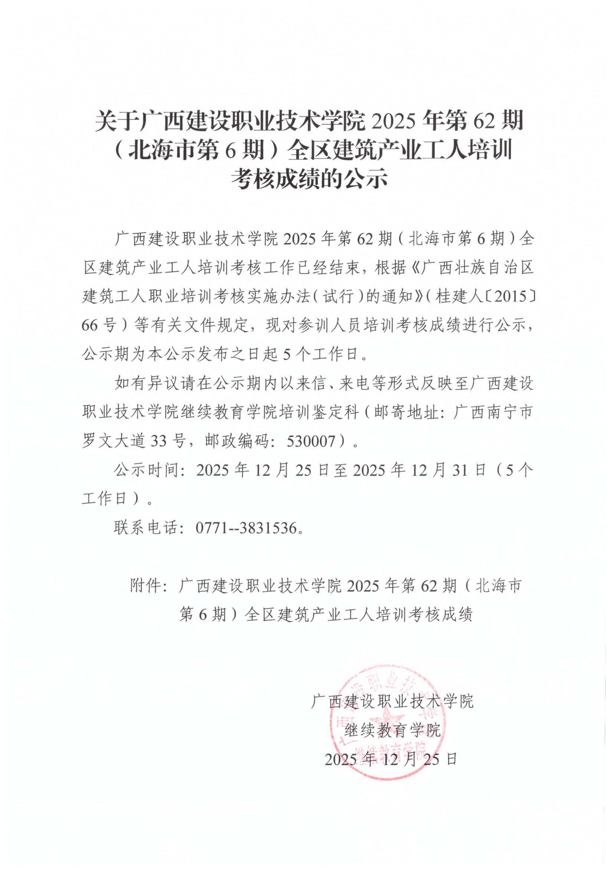 培训信息 当前位置: 首页 >> 培训信息 >> 正文 关于开云线上平台_开云(中国)2025年第62期(北海市第6期)全区开云线上平台_开云(中国)产业工人培训考核成绩的公示 发布日期:2025-12-25 点击: 附件【关于开云线上平台_开云(中国)2025年第62期(北海市第6期)全区开云线上平台_开云(中国)产业工人培训考核成绩的公示.pdf】已下载次