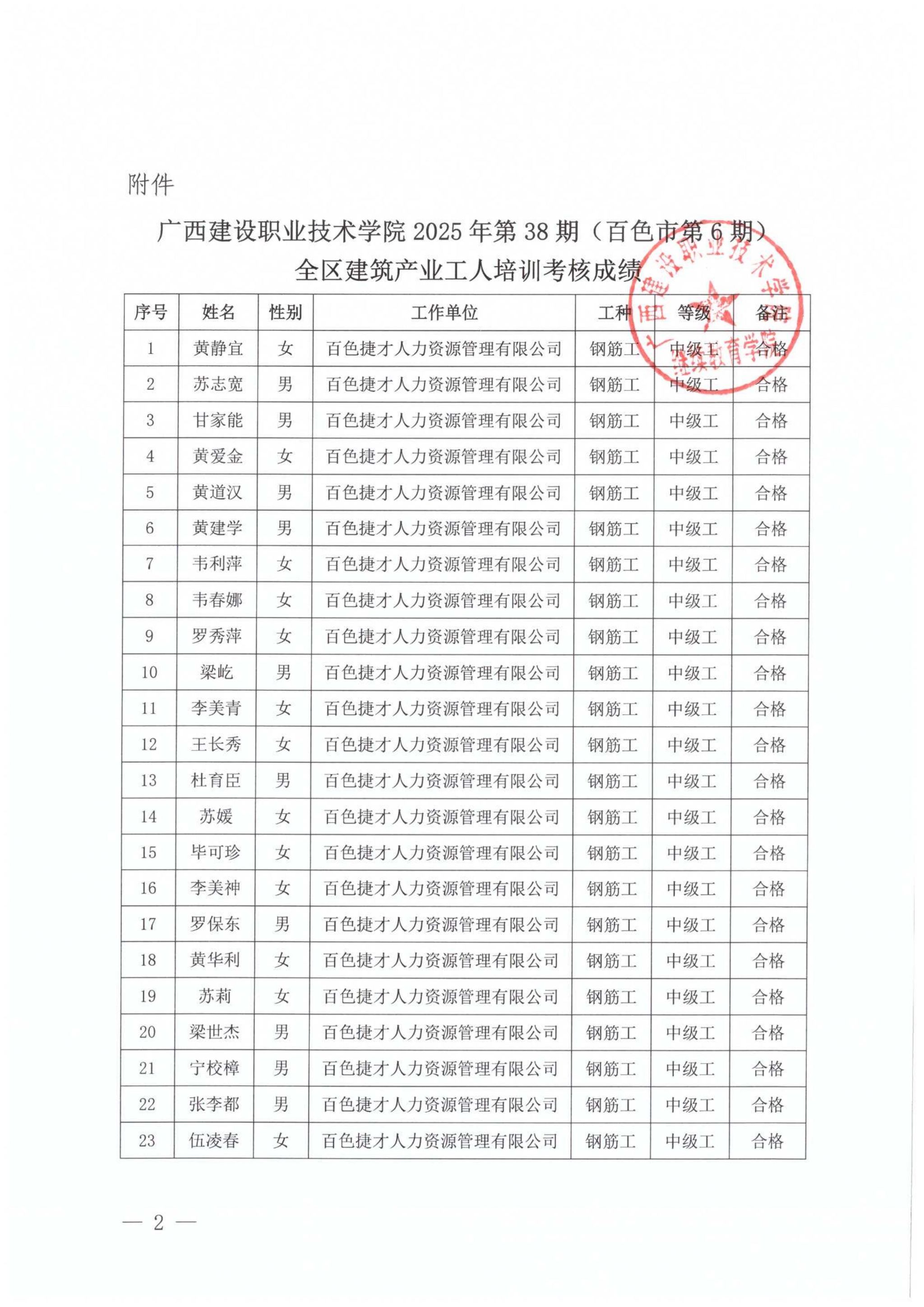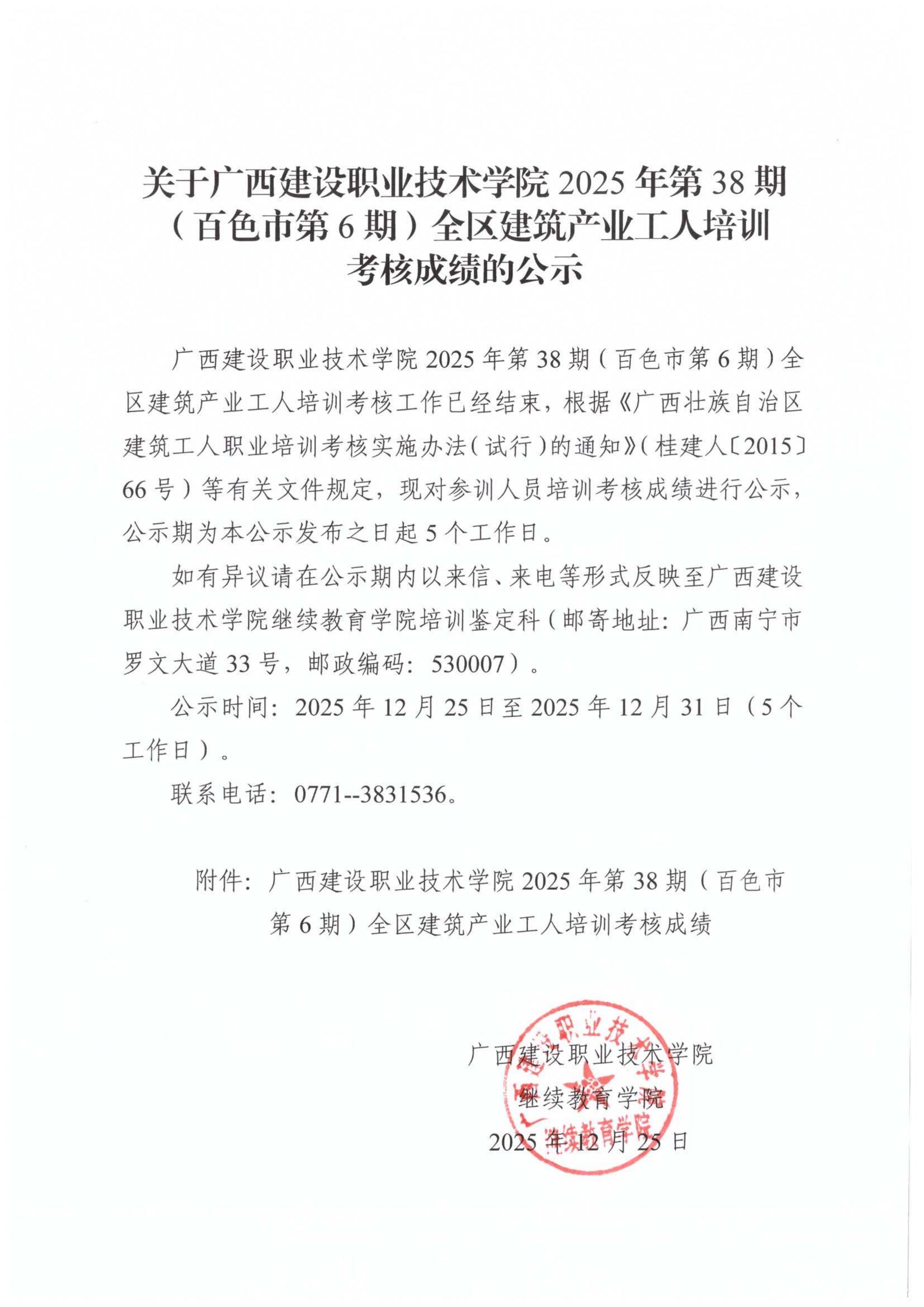 培训信息 当前位置: 首页 >> 培训信息 >> 正文 关于开云线上平台_开云(中国)2025年第38期(百色市第6期)全区开云线上平台_开云(中国)产业工人培训考核成绩的公示 发布日期:2025-12-26 点击: 附件【关于开云线上平台_开云(中国)2025年第38期(百色市第6期)全区开云线上平台_开云(中国)产业工人培训考核成绩的公示.pdf】已下载次