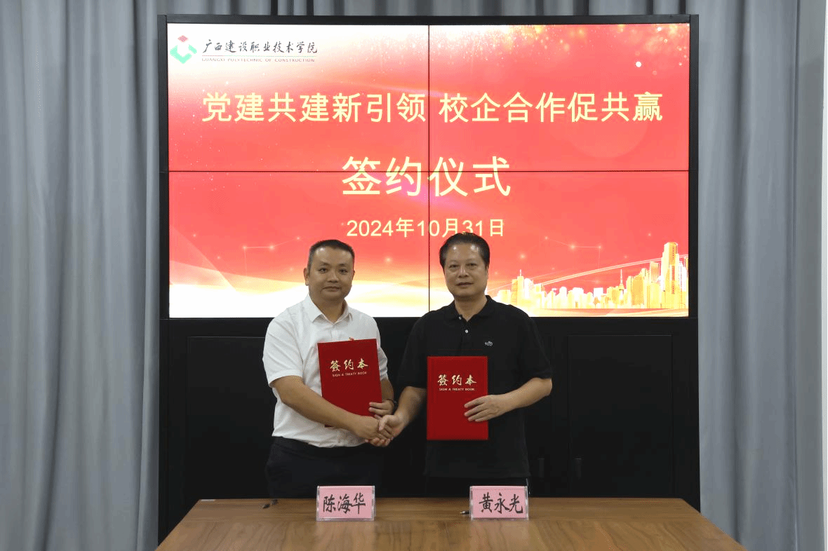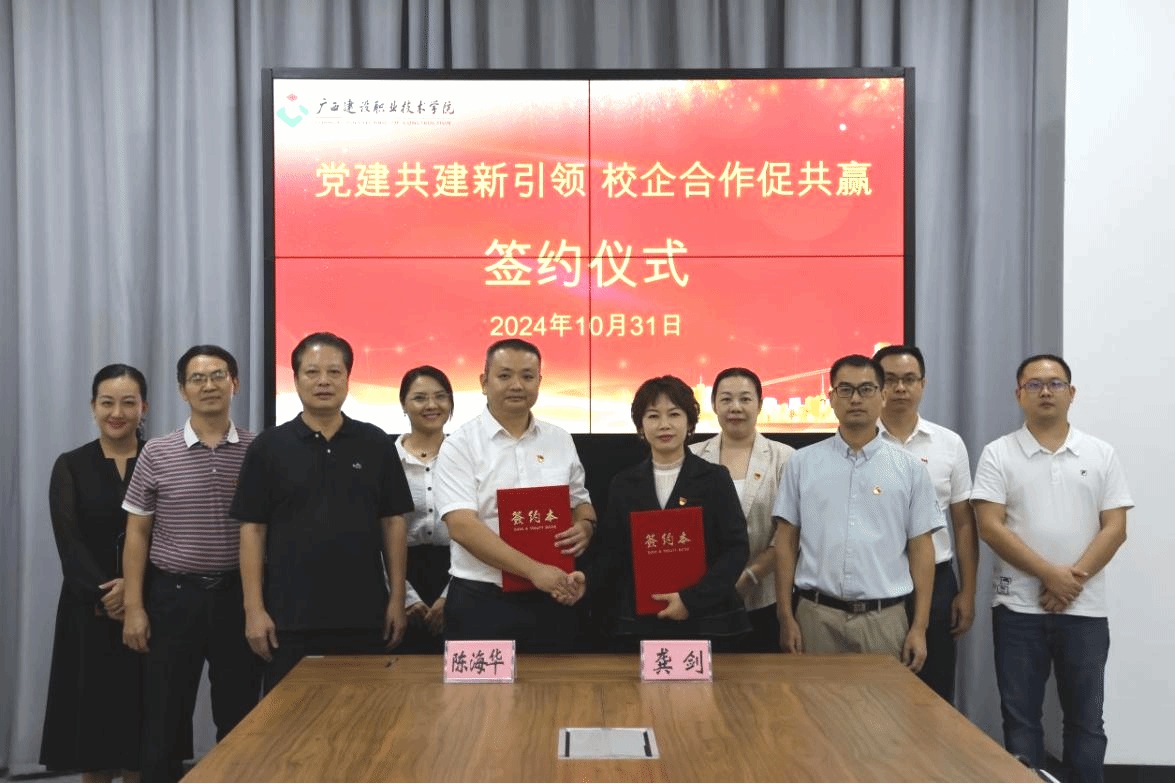 南宁交投园区公司与我院签订校企合作协议,双方将在党建共建、专业技术合作、人才交流与培养等方面,进一步深化校企合作,以产教融合赋能高质量发展。