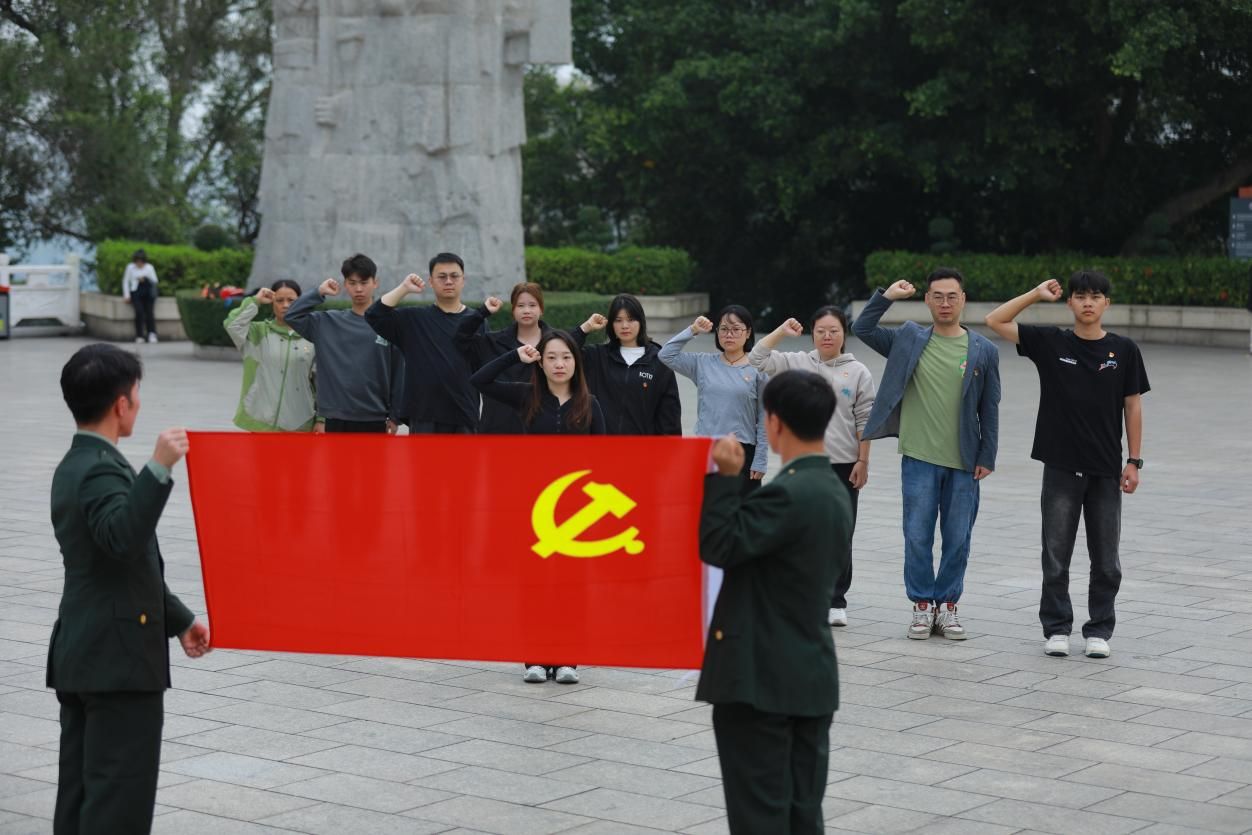 在庄严肃穆的百色起义纪念碑前,全体党员列队肃立,重温入党誓词,表达对革命先烈的深切缅怀与无限敬仰。学生代表梁文林发言表示,将不忘历史、勇担使命,把红色基因融入青春奋斗。师生们还走上红军桥,实地感受革命年代的艰辛历程,进一步砥砺初心、坚定信仰。