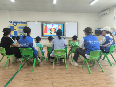 活动当天,在指导老师介绍志愿服务活动的注意事项后,志愿团前往到广西区康复中心开展活动,在康复中心工作人员的引导下进入到各个班级和小朋友们一起展开教学活动,一起玩游戏,一起看动画,一起参加剪纸及学习烹饪课程等活动。当小朋友需要帮助的时候志愿者们总会耐心的进行引导,他们以耐心为画笔,以细心为颜料,为儿童们勾勒出了一个充满爱与关怀的世界。志愿者们用行动诠释了青年学生的热情与爱心,身上磅礴的朝气也在感染着小朋友们,小朋友们发自内心的笑容就是志愿者们最好的肯定和嘉奖。