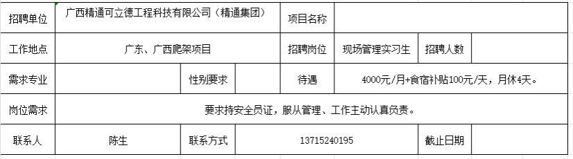【招聘】广西精通可立德工程科技有限公司(精通集团)