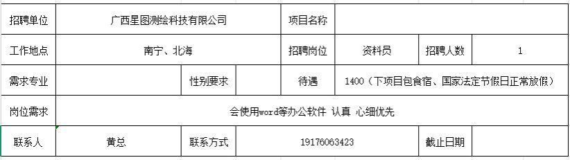 【招聘】广西星图测绘科技有限公司