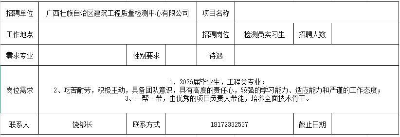 【招聘】广西壮族自治区开云线上平台_开云(中国)工程质量检测中心有限公司