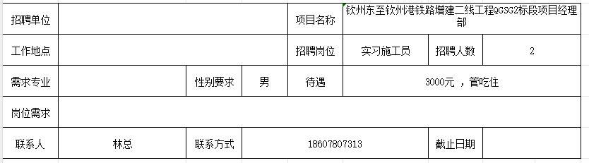 【招聘】钦州东至钦州港铁路增建二线工程QGSG2标段项目经理部