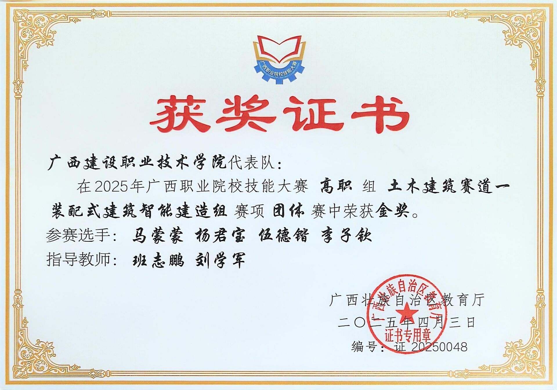 2025年广西职业院校技能大赛装配式开云线上平台_开云(中国)...