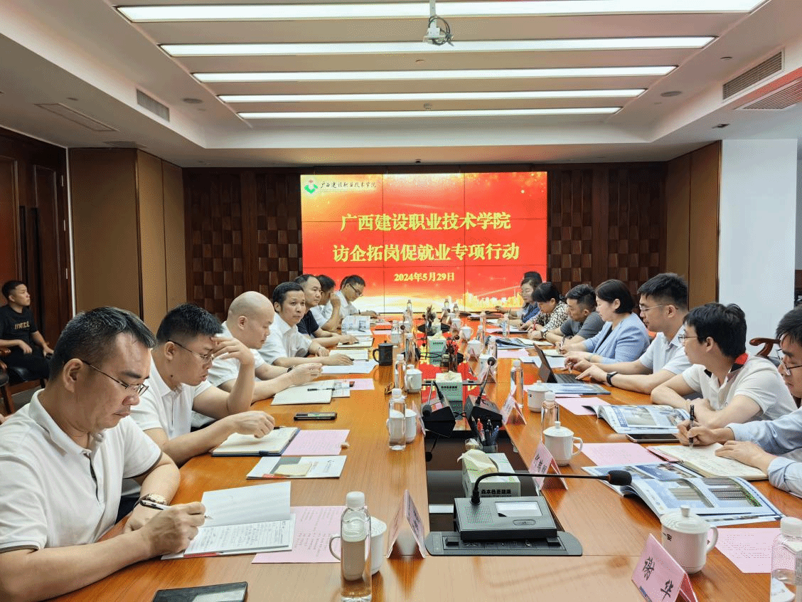 广西建院5月31日讯(管理工程学院 冯瑛琪)为深入贯彻《教育部办公厅关于开展全国高校书记校长访企拓岗促就业专项行动的通知》精神,落实毕业生就业创业工作“一把手工程”,5月29日下午,学校党委书记刘晓红,副校长柏挺带队到广西建工集团第一安装工程有限公司(以下简称“一安公司”)走访调研。学校党委办公室主任萧菁、招生就业处处长孙保强、国际交流中心主任陈晓及管理工程学院领导班子一同前往。座谈会现场座谈会上,公司董事长徐木新介绍了一安公司发展历程、...