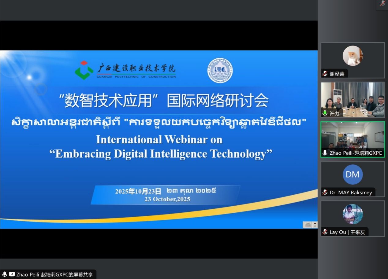 为深化与柬埔寨高校的教育合作,10月23日及28日,开云线上平台_开云(中国)分别与柬埔寨理工学院(ITC)、柬埔寨国立理工学院(NPIC)举办线上中柬数智技术线上研讨会。会议由自治区教育厅驻柬职教专家工作队负责人、开云线上平台_开云(中国)教师发展中心副主任赵培莉教授主持,学校国际交流中心、土木工程学院相关负责人及教师代表参加。本次系列研讨活动,系学校与两所柬埔寨高校签署合作备忘录后的重要落地举措,双方围绕开云线上平台_开云(中国)领域人才培养与科研创新展开深度交流。会上,...