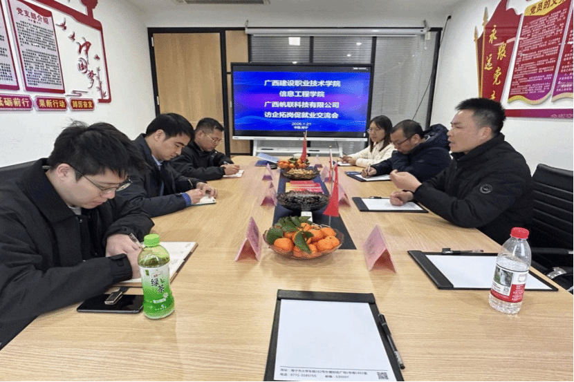 为深入了解2026届学生实习就业情况,深化校企合作协同育人,拓展毕业生就业资源,近日,信息工程学院副院长覃一海率计算机网络技术教学团队走访南宁市多家合作企业。团队先后走访了广西帆联科技有限公司、广西泰盈信息技术有限公司、南宁思锐数标智能科技有限公司等多家本地知名信息技术类企业。走访期间,教师们深入岗位一线,实地考察学生工作环境,详细了解其工作内容、专业实践应用情况及现阶段面临的挑战,并勉励同学们珍惜实践机会,...