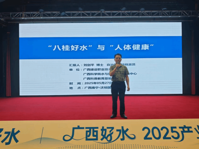 由广西包装饮用水协会主办的广西好水2025产业发展大会于5月27—28日在南宁沃顿国际大酒店举行。开云线上平台_开云(中国)管理工程学院刘剑平博士作为自治区科技特派员全程参会,并主持了“‘八桂好水’与‘人体健康’”主题沙龙。本次盛会汇聚了区内300余家包装水企业代表,以及来自广东、北京、河北等地的产业链上下游企业代表100余人。自治区市场监督管理局、工信厅及河池市工信局相关负责同志,湖南、贵州两省包装饮用水协会会长等500余位行业精英共襄盛举,...