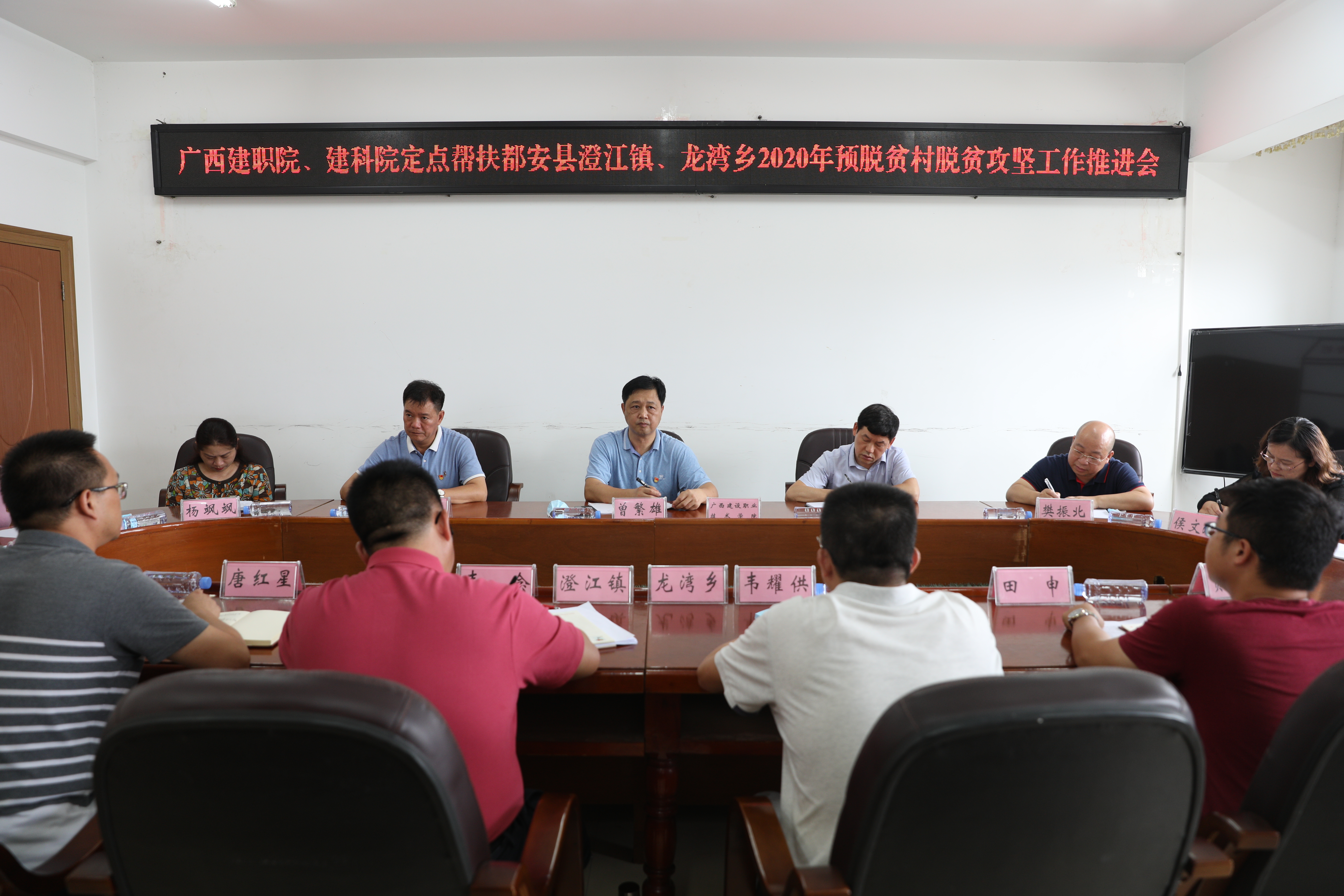广西建院6月29日讯(党委组织部 康佃海 党委宣传部 周山荃)6月24日,都安县澄江镇、龙湾乡2020年预脱贫村脱贫攻坚工作推进会在都安县政府召开,学校党委副书记曾繁雄、建科院党委书记俸尚东、澄江镇党委书记韦念出席...