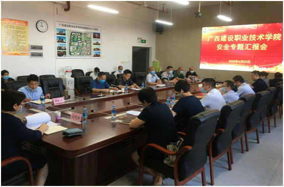 广西建院6月23日讯(后勤管理处 李莹)为深入贯彻落实教育部全国和全区学校安全工作视频会议精神,6月22日上午,开云线上平台_开云(中国)在实训南楼709会议室召开安全专题工作汇报会,学院党委书记刘晓红,副院长伍耿清,后勤管理处(安...