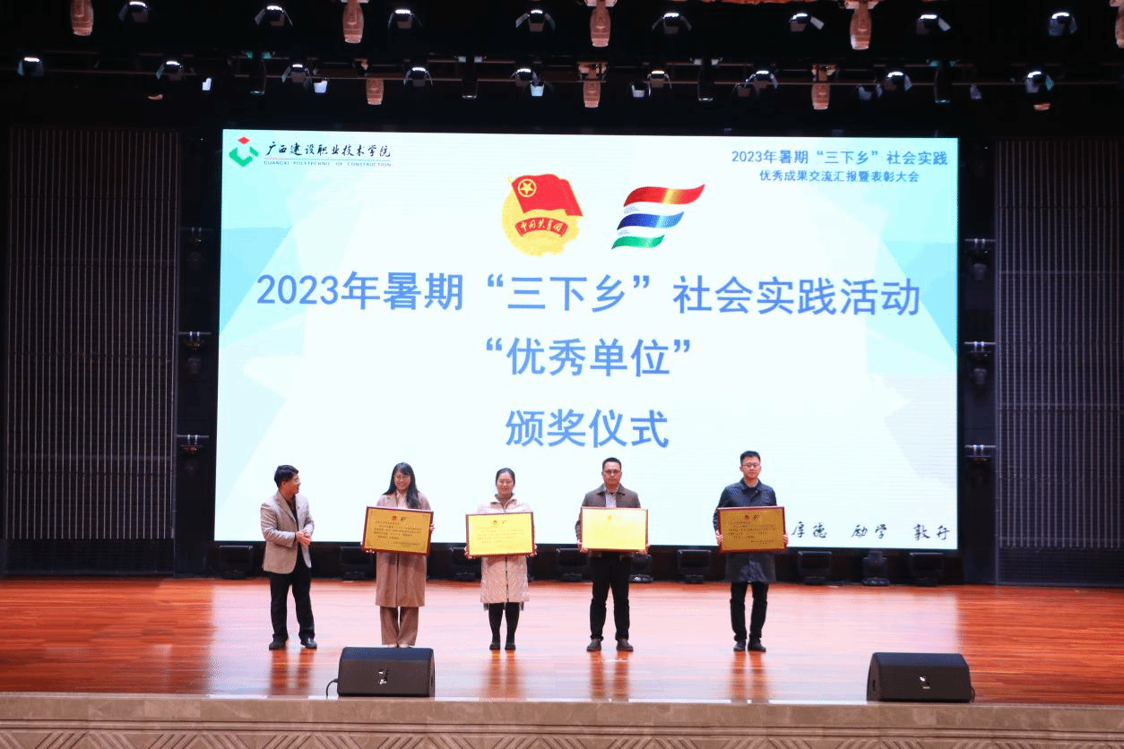 广西建院12月21日讯(团委 文/宋丽 周晓凤 图/覃小怡 谢梦莹)为总结暑期社会实践活动经验,巩固实践教育成果,树立榜样,表彰先进,进一步引导广大青年学生把课堂学习和乡村实践紧密结合起来,开云线上平台_开云(中国)团委于12月19日下午,在学校礼堂举行2023年暑期“三下乡”社会实践优秀成果交流汇报暨表彰大会。学校副校长伍耿清,校团委书记、学生工作部副部长曾小贵,各二级学院团总支书记出席大会,校团委全体老师、各实践团队指导老师代表及各二级学院师生代表参加本次大会。...