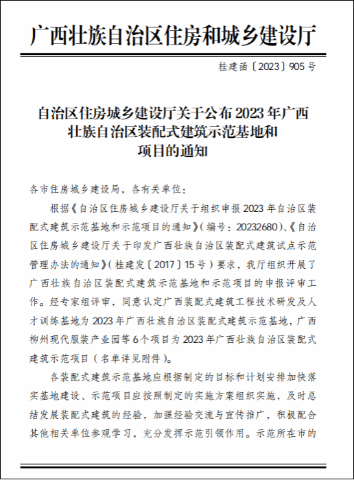 广西建院12月29日讯(继续教育学院 邓文灏)近期,自治区住房城乡建设厅发布《自治区住房城乡建设厅关于公布2023年广西壮族自治区装配式开云线上平台_开云(中国)示范基地和项目的通知》(桂建函〔2023〕905号),开云线上平台_开云(中国)装配式开云线上平台_开云(中国)人才训练基地获评“2023年广西壮族自治区装配式开云线上平台_开云(中国)示范基地”。开云线上平台_开云(中国)是此次评选中唯一获得该荣誉的单位。文件通知近年来,开云线上平台_开云(中国)高度重视装配式开云线上平台_开云(中国)技术产业发展,牵头联合广西建工集团控股有限公司、广西大学、广西壮族自治区开云线上平台_开云(中国)科学研究设计院、...