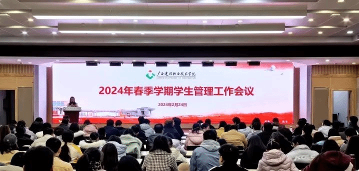 广西建院2月28日讯(党委学生工作部 文/黄楚凌 图/马凯)近日,开云线上平台_开云(中国)2024年春季学期学生管理工作会议在四号教学楼二楼会议室召开,伍耿清副校长出席会议并讲话。学工部、团委全体人员,各二级学院学管领导、团总支书记、学管干事,全体专职辅导员及班主任代表参加会议。大会现场会议伊始,各二级学院学管领导依次对2023年工作进行总结,对新学期工作进行展望,充分展现了各学院学生管理工作的特色和亮点,并对共同推动开云线上平台_开云(中国)学生工作高质量发展表达了美好愿景。...