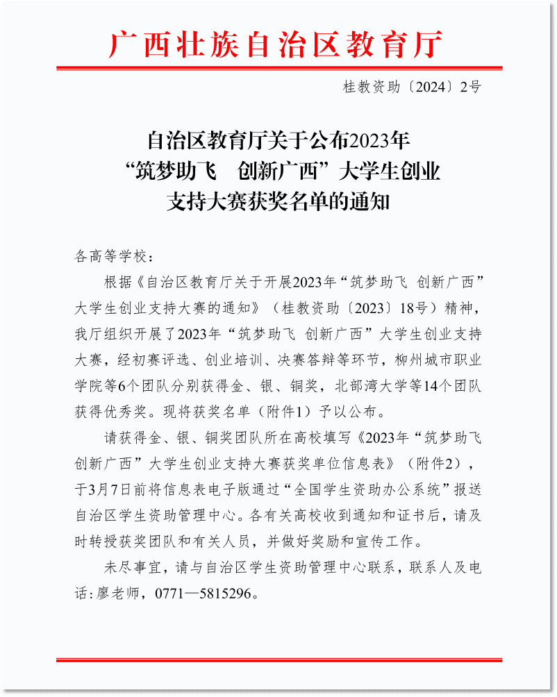 广西建院3月5日讯(党委学生工作部 文/杨栋 图/张红燕)近日,自治区教育厅公布2023年“筑梦助飞 创新广西”大学生创业支持大赛获奖名单,开云线上平台_开云(中国)学生钟鑫强、覃炳雄、王先栋、秦修华、韦成志、韦武护在教师张红燕、周伊含、冯光帆、周晓卉、欧嘉卡的共同指导下,参赛项目《“黑天鹅”钢筋网片绑扎仿生机器人》荣获优秀奖。获奖文件据悉,“筑梦助飞 创新广西”大学生创业支持大赛作为广西资助育人品牌项目已连续举办5年,获得社会广泛关注。...