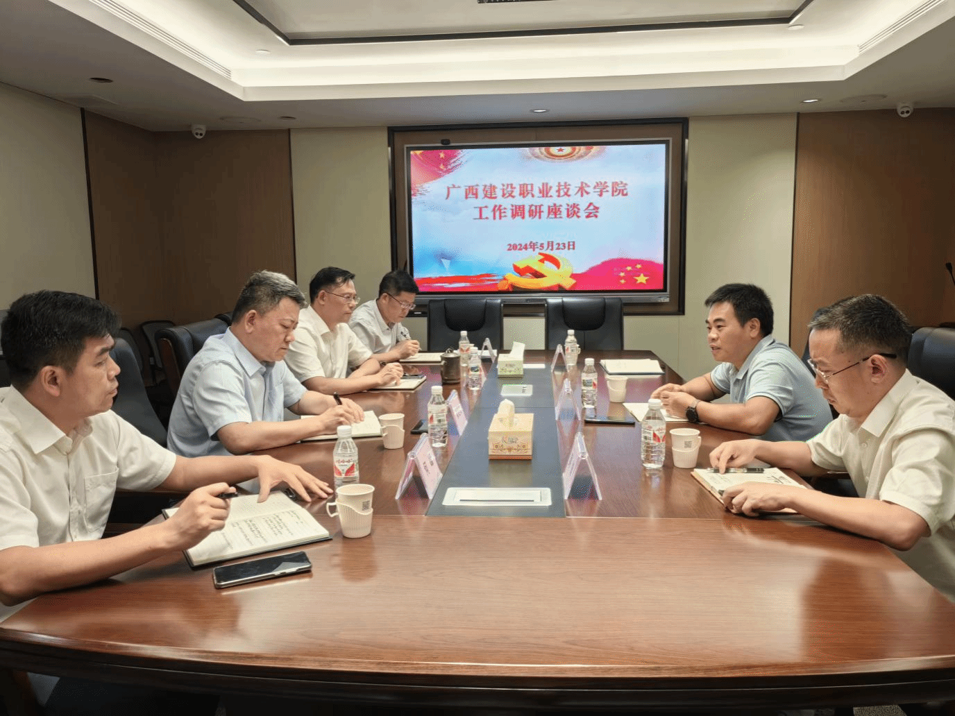 广西建院5月24日讯(纪委办公室 闭梅)为扎实推进校属企业党纪学习教育,加强校属企业全面从严治党和党风廉政建设工作的监督指导,5月23日,学校纪委书记唐东升一行3人深入广西城建咨询设计有限公司开展调研。座谈会现场会上,广西城建咨询设计有限公司党总支书记、董事长梁浩文汇报了公司的党纪学习教育、党风廉政建设和企业经营发展等方面情况,其他领导班子成员分别就具体分管业务工作情况进行了详细汇报。唐东升书记对广西城建咨询设计有限公司开展党纪学习教育、...