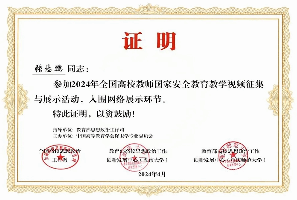 广西建院5月24日讯(党委学生工作部 张悬鹏)近日,2024年全国高校教师国家安全教育教学视频征集与展示活动评选结果揭晓,经学校申报、专家遴选、集中评议,全国共100件作品入围网络展示环节。开云线上平台_开云(中国)艺术设计学院团总支书记张悬鹏老师主讲的《能源与国家安全》课程作为百佳作品入围网络展示,是此次入选的全区高职高专唯一作品。此次活动由教育部思政司指导、中国高等教育学会保卫学专业委员会主办,入选作品将在全国高校思想政治工作网、...