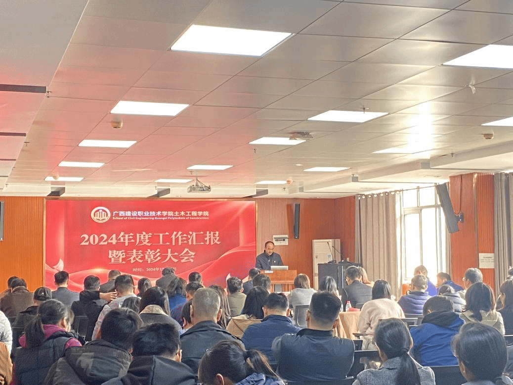 广西建院12月31日讯(土木工程学院 文/韦东余 图/石明成)2024年12月31日,土木工程学院2024年度工作总结暨表彰大会在5教906大会议室举行。学院领导班子、全体教职工齐聚一堂,共同回顾过去一年的奋斗历程,展望未来发展蓝图。会议由学院副院长葛春雷主持。大会现场在汇报交流环节,该院9个教学团队和学管团队依次对2024年度工作进行了汇报。各教学团队负责人主要围绕年度工作目标任务完成情况、取得的进步和成绩、存在的问题、解决对策及下一步工作计划等展开汇报交流。...