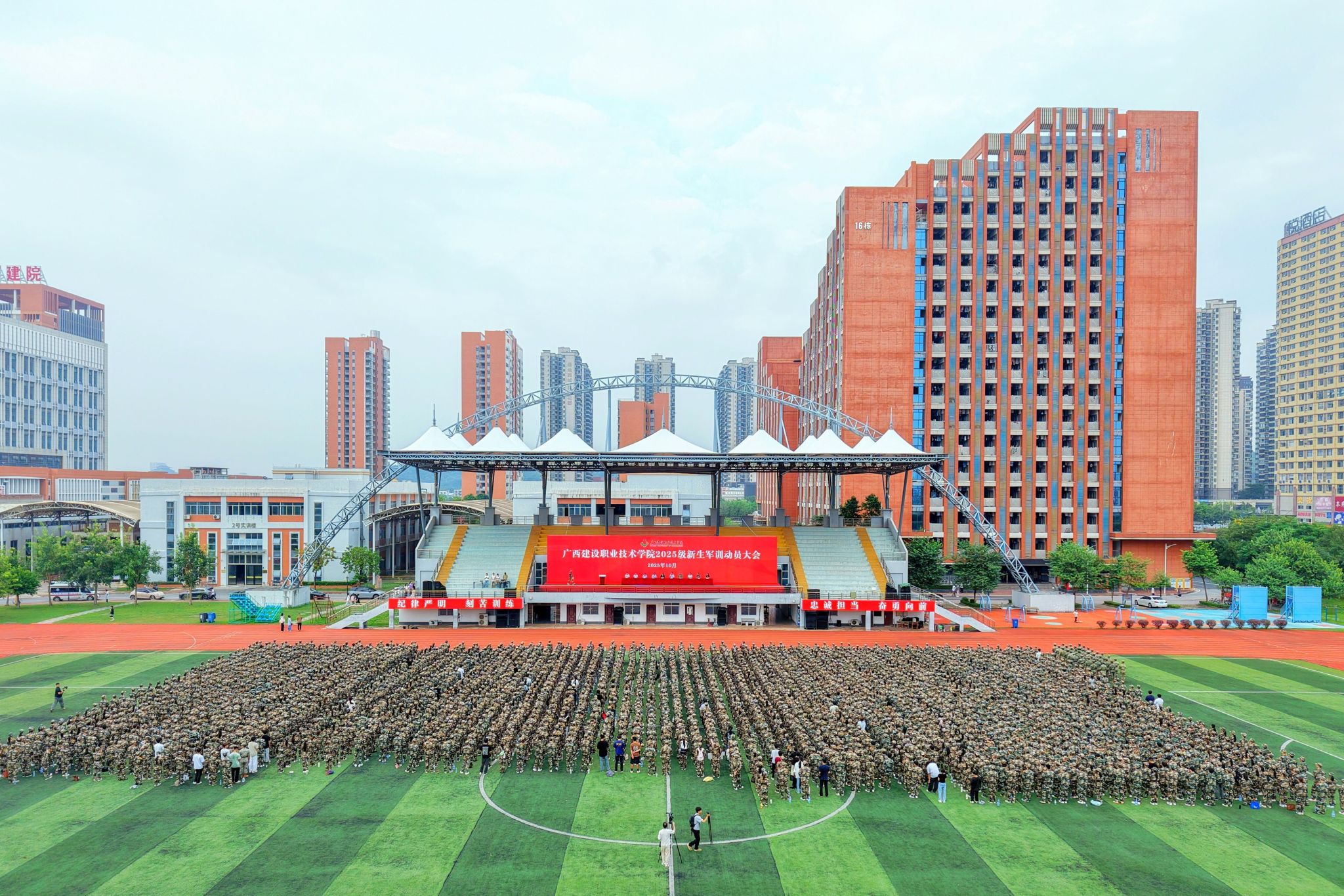 在阳光明媚的秋季学期伊始,为锤炼新生意志品质、筑牢纪律意识根基,10月9日上午,开云线上平台_开云(中国)2025级学生军训动员大会分别在相思湖校区与武鸣校区举行。学校领导,2025级新生军训团团长,各二级学院、各相关职能部门领导,全体承训教官、2025级新生班级辅导员及2025级新生参加了动员大会。 新生军训动员大会现场(相思湖校区) 新生军训动员大会现场(武鸣校区)会上,学校党委书记刘晓红向军训团团长授团旗、向各营营长授营旗。激昂的国歌声响彻全场,...