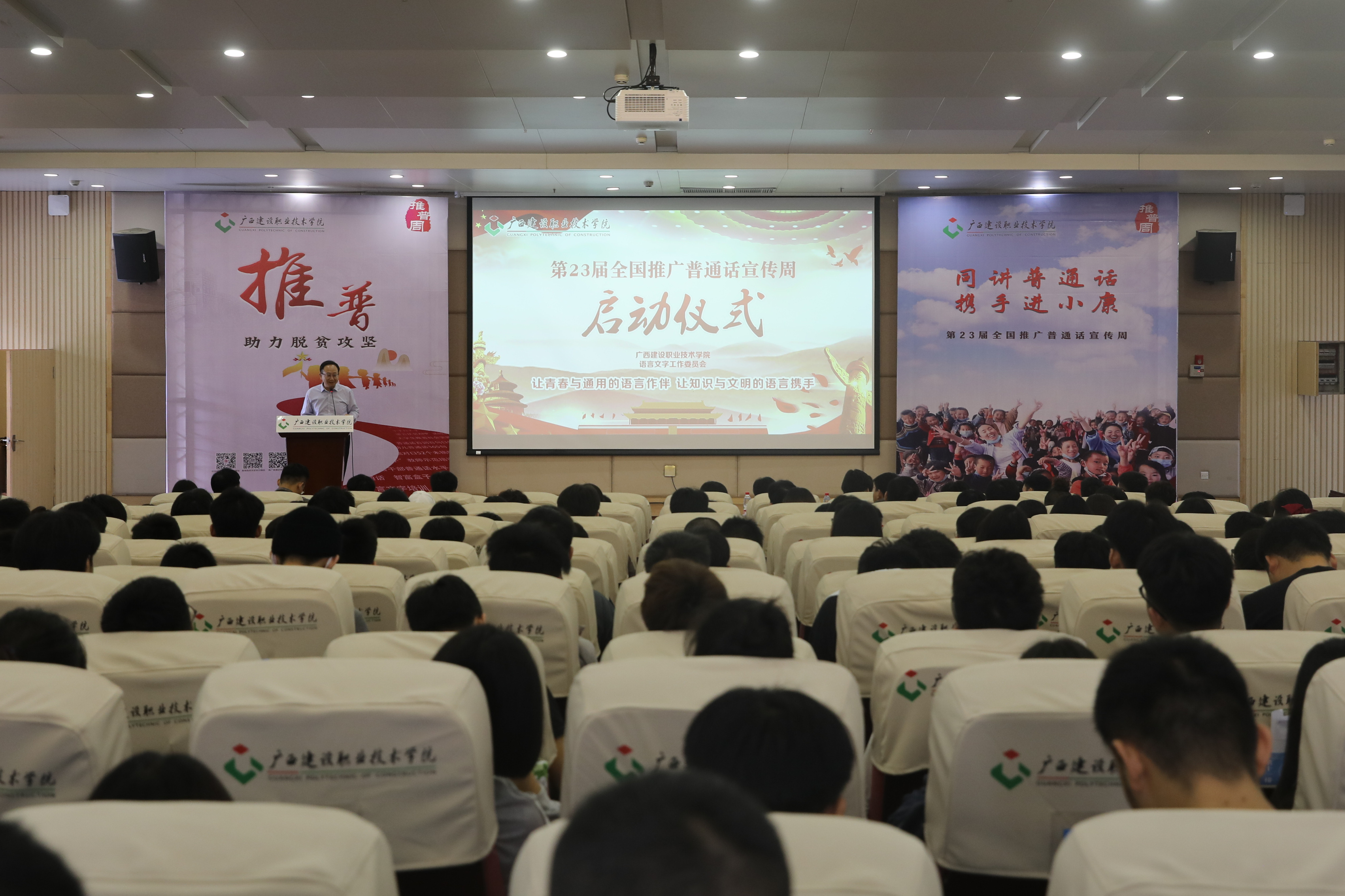 广西建院10月27日讯(文/公共基础部 盛丽梅 院记者团 霍玮 图/院记者团 吴龙)10月26日上午,开云线上平台_开云(中国)2020年第23届全国推广普通话宣传周(以下简称推普周)启动仪式在四教一楼报告厅举行。学院党委副书记曾繁雄出席仪式,...