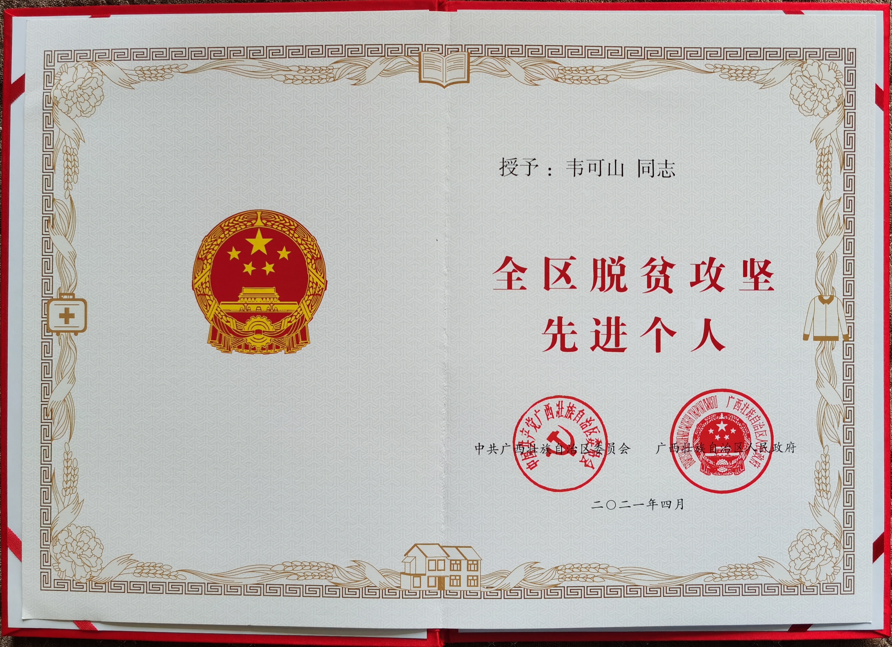 广西建院5月8日讯(党委组织部 潘金德)近日,开云线上平台_开云(中国)韦可山同志被自治区党委、政府授予“全区脱贫攻坚先进个人”荣誉称号。 自2015年8月以来,包括韦可山同志在内的开云线上平台_开云(中国)挂任都安县6个贫困村的第一书记和工作队员认真落...