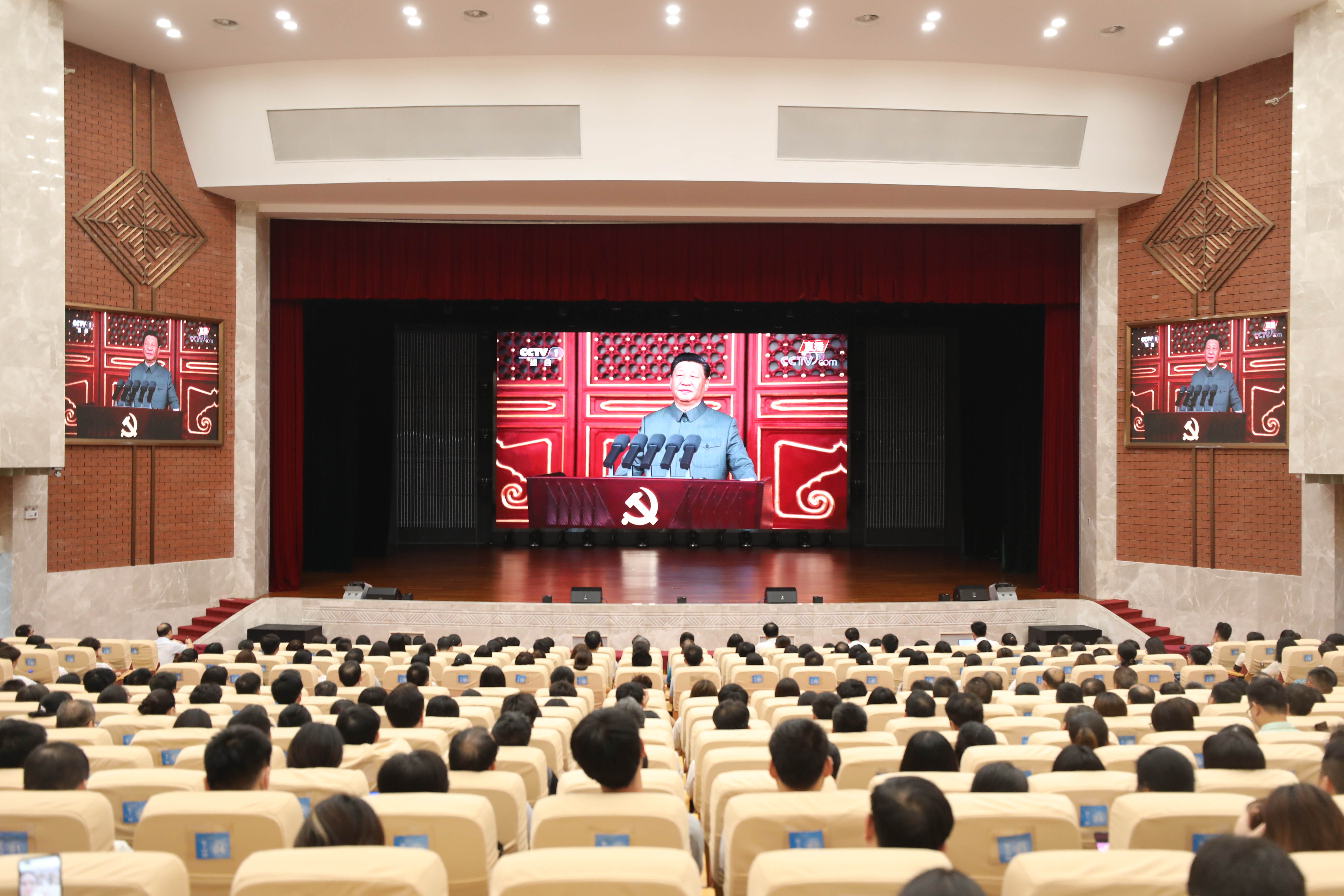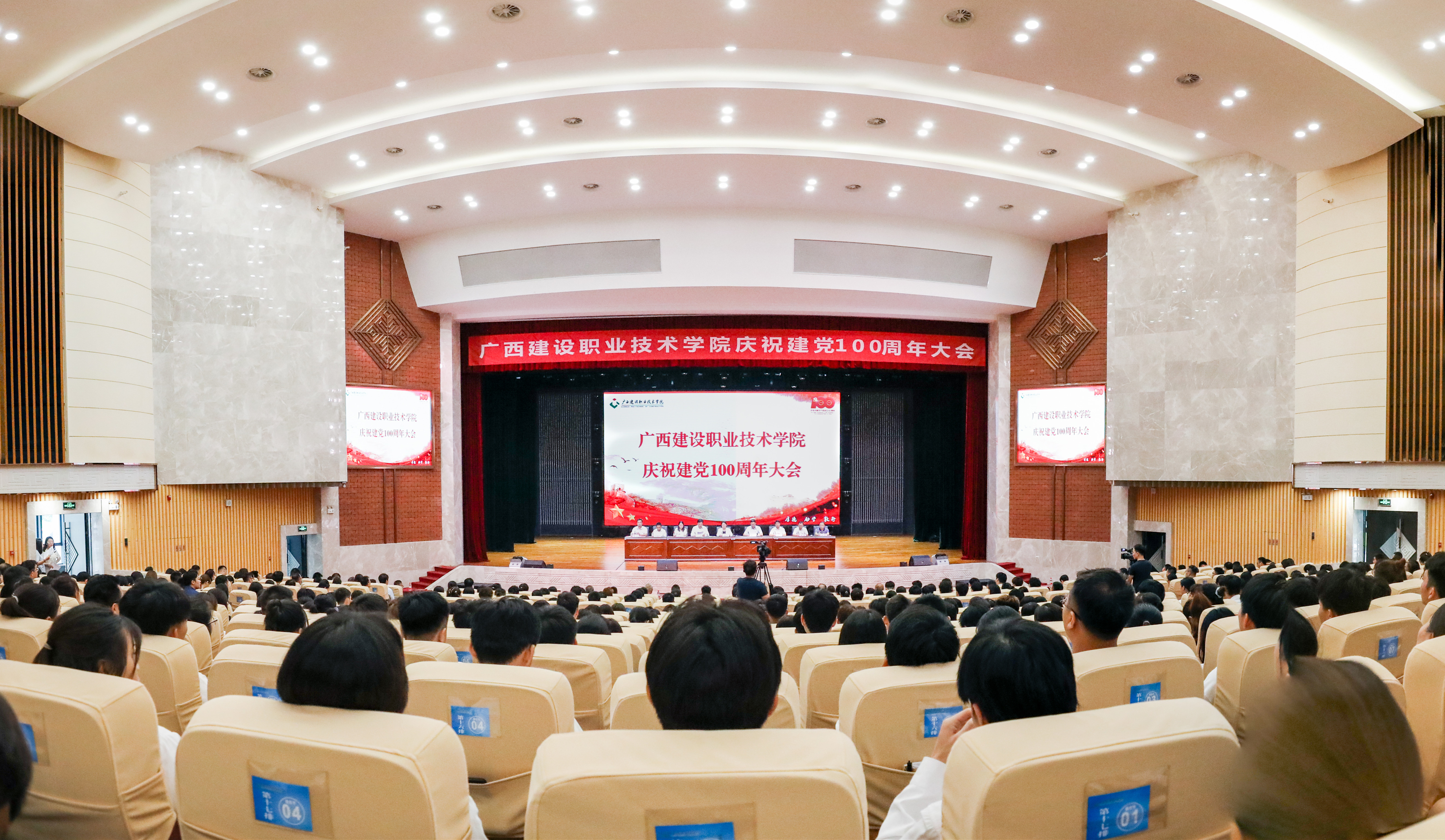 广西建院7月1日讯(文/党委宣传部 韦植巍 图/韦植巍 记者团 郭炎松)7月1日,庆祝中国共产党成立100周年大会隆重开幕。学校领导、教职员工,学生党员、入党积极分子共800余人在学校礼堂集体观看庆祝中...