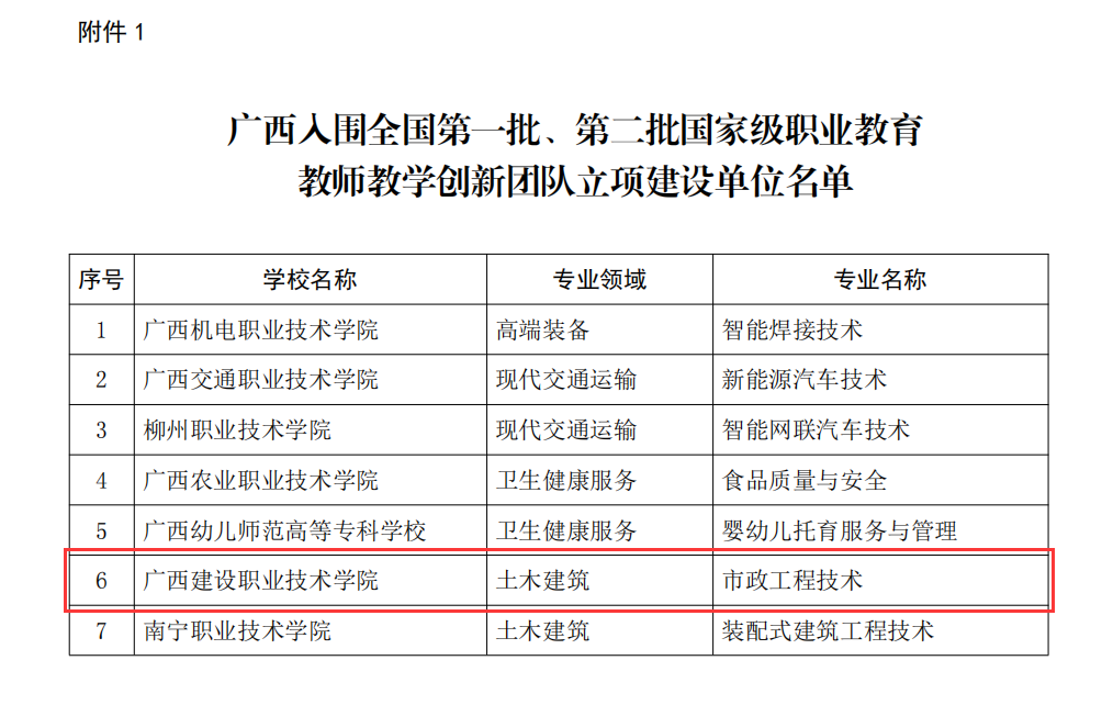 广西建院8月15日讯(城交系 林艳)近日,教育部公布第二批国家级职业教育教师教学创新团队立项建设单位名单,开云线上平台_开云(中国)申报的市政工程技术专业团队成功入选。这是开云线上平台_开云(中国)继开云线上平台_开云(中国)工程技术专业团队入选首批国家级创新团队...