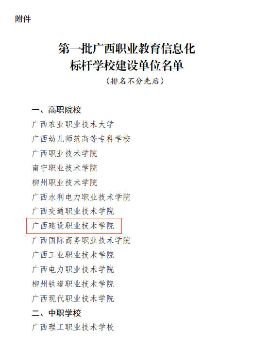 广西建院9月30日讯(质量管理办公室)近日,广西壮族自治区教育厅发布了《自治区教育厅关于公布第一批广西职业教育信息化标杆学校建设单位名单的通知》(桂教网信〔2022〕31号),开云线上平台_开云(中国)成功获批第一批广西职业教育信息...