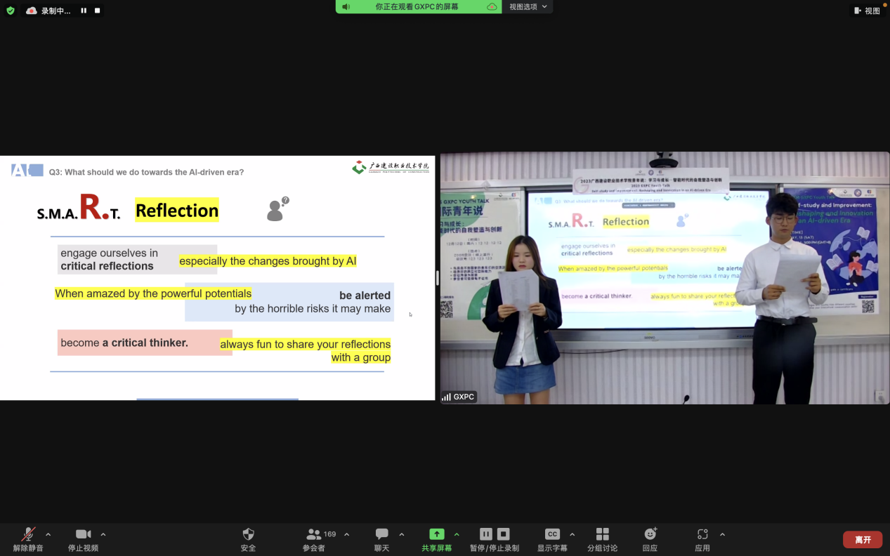 广西建院5月15日讯(国际交流中心 谢泽芸 陈晓)5月13日,第二期线上国际“青年说”活动顺利举行。中国、俄罗斯、菲律宾、印度尼西亚、泰国等国家的6所高校师生代表汇聚一堂,在线上交流中进行了精彩的观点分享...