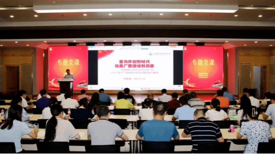 广西建院6月17日讯(党委学生工作部 文/宋霞 图/余骦 马凯)6月16日下午,学校副校长伍耿清以《奋力开创新时代壮美广西建设新局面》为题,在四教二楼报告厅为学校直属第四、第五党支部全体党员上党课。 专题党课现场 伍耿清副校长作专题讲课伍耿清副校长深情回顾了党的十八大以来,习近平总书记对广西发展给予的亲切关怀和殷切嘱托,重点围绕学习贯彻落实习近平总书记对广西“五个更大”重要要求和视察广西“4·27”重要讲话精神,系统阐释了“...