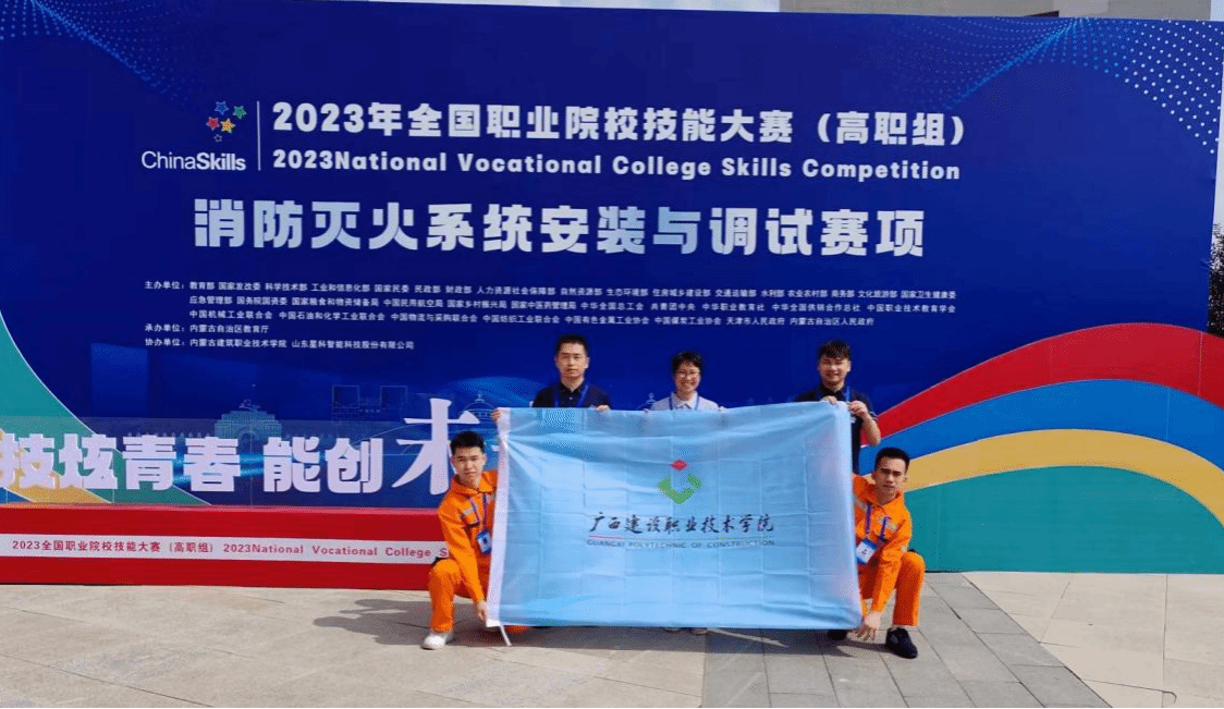 广西建院9月18日讯(设备与环境学院 杨文婷)9月17日,2023年全国职业院校技能大赛(高职组)消防灭火系统安装与调试赛项在内蒙古开云线上平台_开云(中国)职业技术学院落下帷幕。经过激烈角逐,由开云线上平台_开云(中国)设备与环境学院杨文婷、宁存岱老师指导的学生党科盛、吴熊仕组成的团队荣获该赛项团体二等奖。本次大赛“消防灭火系统安装与调试”赛项共有来自全国各省(自治区、直辖市)和新疆生产建设兵团的51支代表队同台竞技、各展风采。本赛项竞赛内容为自动喷水灭火系统、...