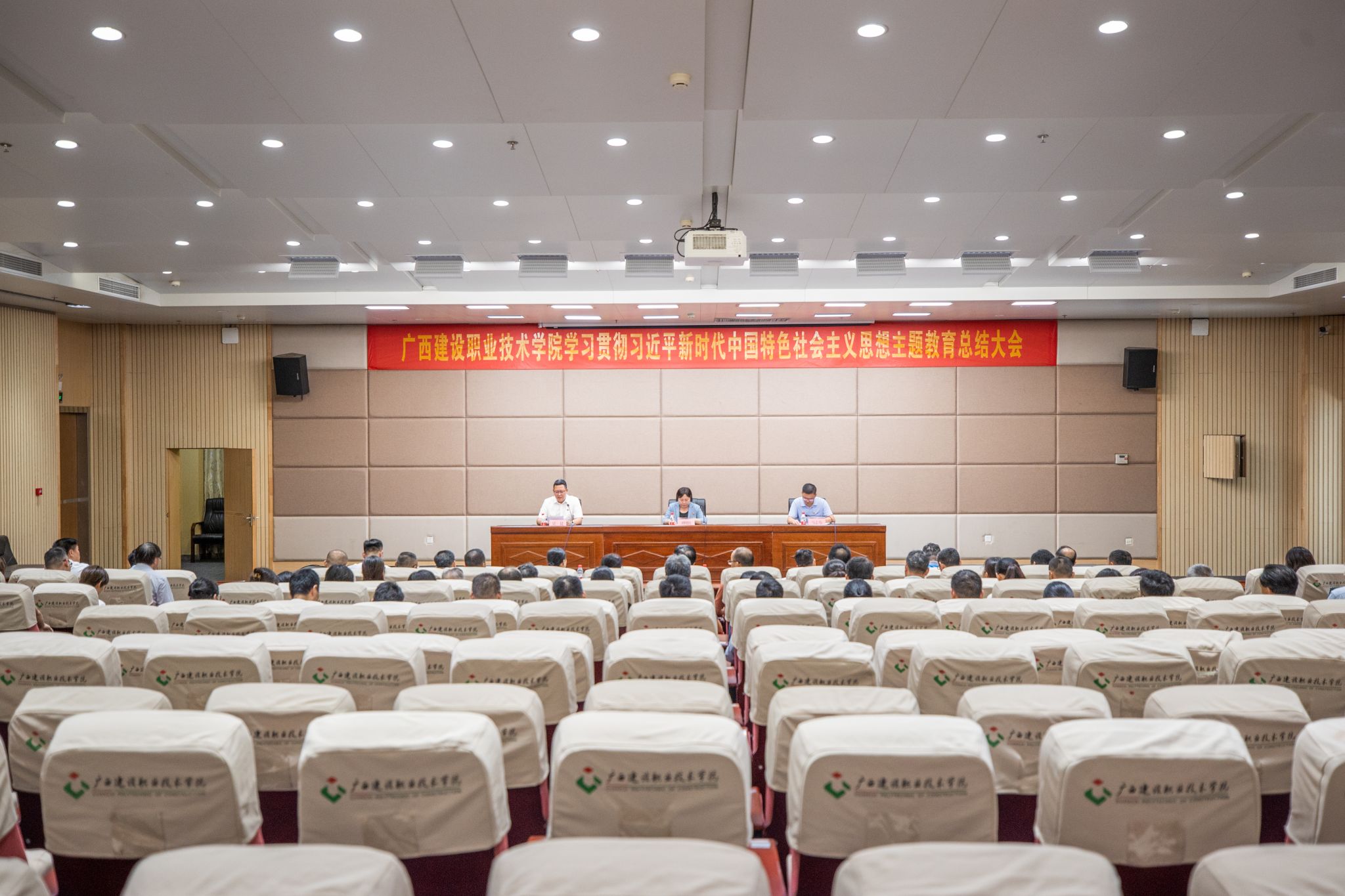 广西建院9月20日讯(文/党委宣传部 陈熙 图/党委宣传部)9月20日下午,开云线上平台_开云(中国)在四教一楼报告厅召开学习贯彻习近平新时代中国特色社会主义思想主题教育总结大会,全面总结学校主题教育开展情况和主要成效,部署深化拓展主题教育成果各项工作。自治区党委第十二巡回指导组成员、广西民族大学材料与环境学院党总支书记马志伟到会指导并讲话。学校党委书记刘晓红作主题教育总结报告。刘晓红书记代表学校党委全面总结了学校开展主题教育的做法、...