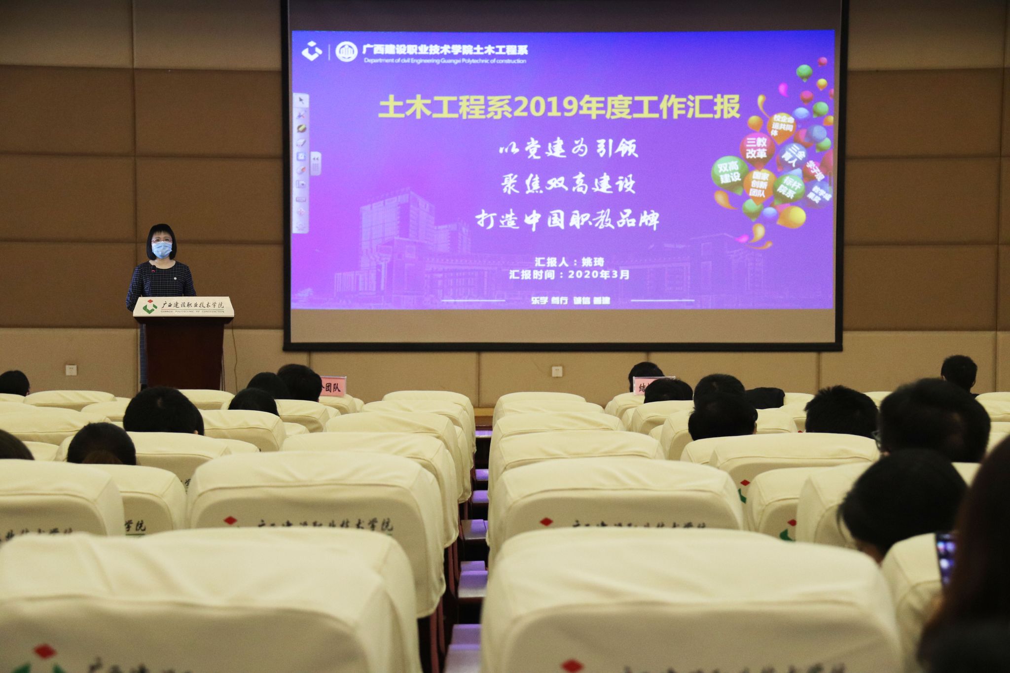 广西建院4月21日讯(土木工程系 唐未平 韦毅 李盛福)4月21日下午,土木工程系全体教职工在学校4教一楼报告厅召开了2020年春季学期第一次教职工大会。这是在疫情特殊时期,自学校发布《2020年春季学期学生返校通告》...