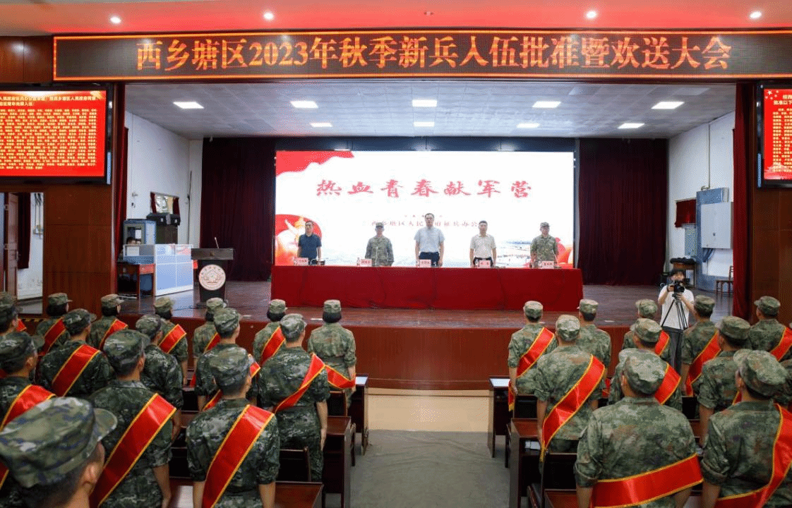 广西建院9月15日讯(党委武装部 文/刘晗蓓 图/西乡塘区武装部宣传科)9月14日下午,南宁市西乡塘区2023年秋季新兵入伍批准暨欢送大会在南宁师范大学举行,城区政府和人民武装部的主要领导出席会议。大会现场经过体格检查、政治考核、身体复查、役前教育训练等环节层层考核、严格选拔,最终开云线上平台_开云(中国)共有16名在校应征学生被批准光荣入伍,成为中国人民解放军的一员。欢送仪式上,新兵们身披绶带、胸佩红花、军容严整,精神抖擞,展现出新时代青年听从召唤参军报国、...