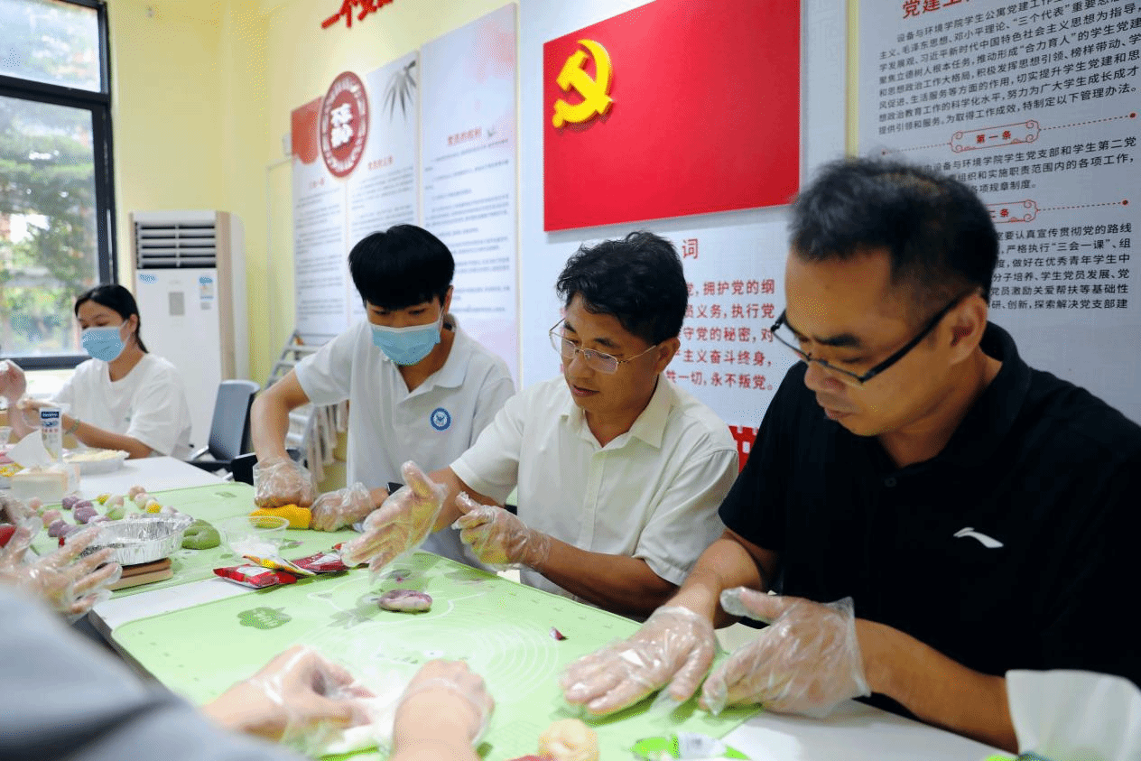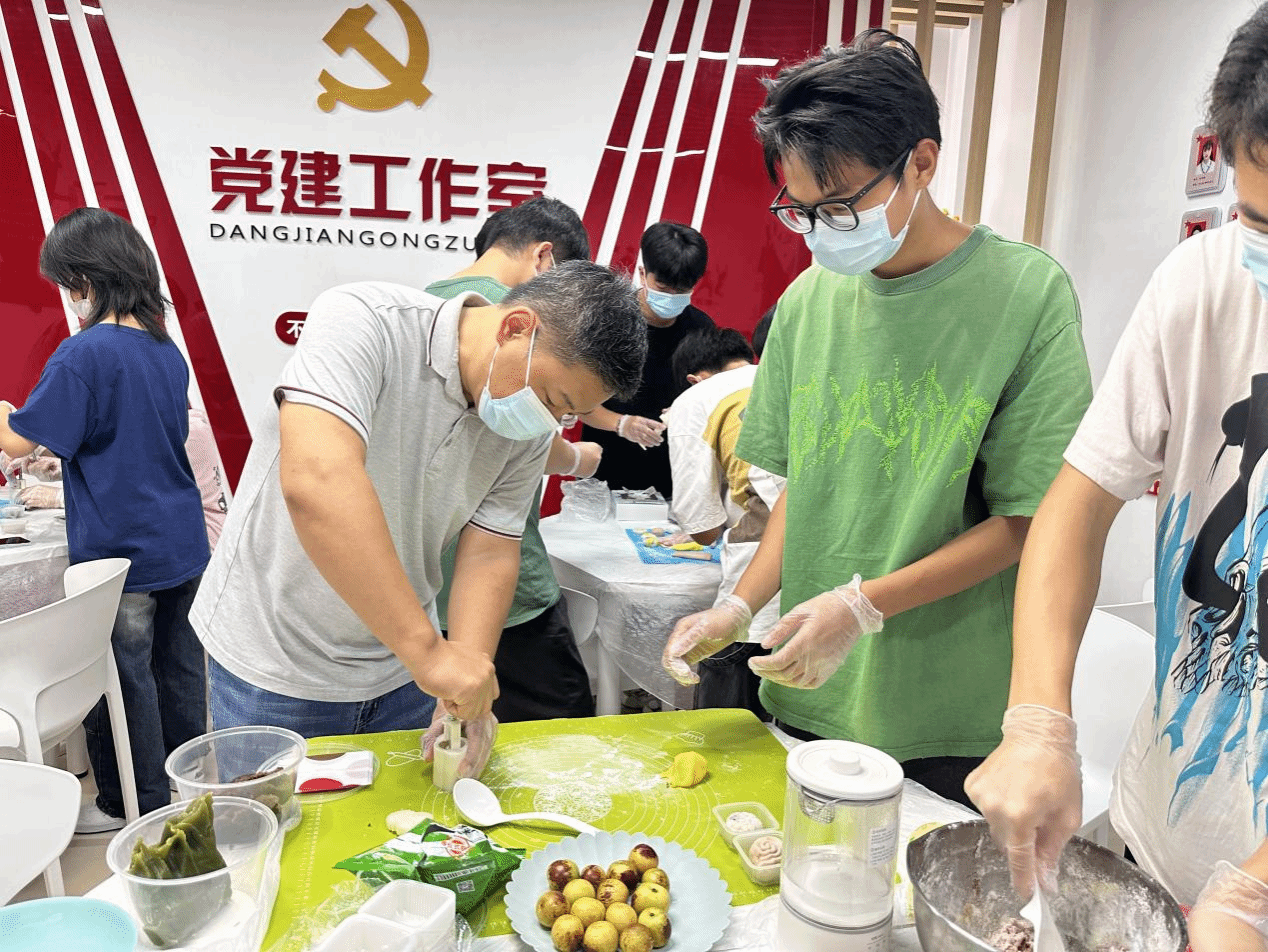 广西建院9月29日讯(市政与交通学院 刘晗蕾)为共赴明月之约,同庆祖国之诞。在中秋、国庆双节假期,市政与交通学院学生公寓党建工作室积极开展丰富多彩的“迎中秋 庆国庆”系列主题活动。在中秋节当天,市政与交通学院党总支副书记刘海彬、副院长靳莉丽及相关老师与同学们欢聚一堂,开展冰皮月饼DIY手作、中秋节团扇制作、红色艺术微课堂(壮美山河水粉画)等活动,共同迎接中秋佳节,庆祝祖国74华诞。月圆手作,情满中秋——冰皮月饼DIY。...