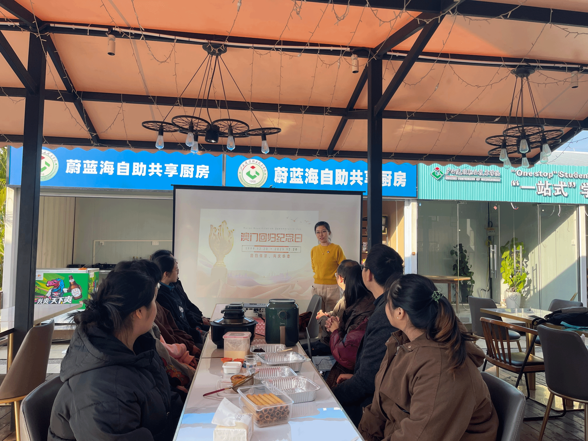 广西建院12月21日讯(设备与环境学院 文/黄小卜 图/徐静 何盛宇)“你可知macau,不是我真姓,我离开你太久了母亲”。为纪念澳门回归,设备与环境学院组织开展纪念澳门回归爱国教育活动。活动由黄小卜老师主持,母哲轩、任龙静、徐静等老师和10余名来自不同班级的同学参加了活动。“一站式”学生社区生活技能超市授课现场设备与环境学院在“一站式”学生社区生活技能超市——“共享厨房”开展爱国教育活动,同时带领同学们认识并亲身体验澳门特色美食的制作。...