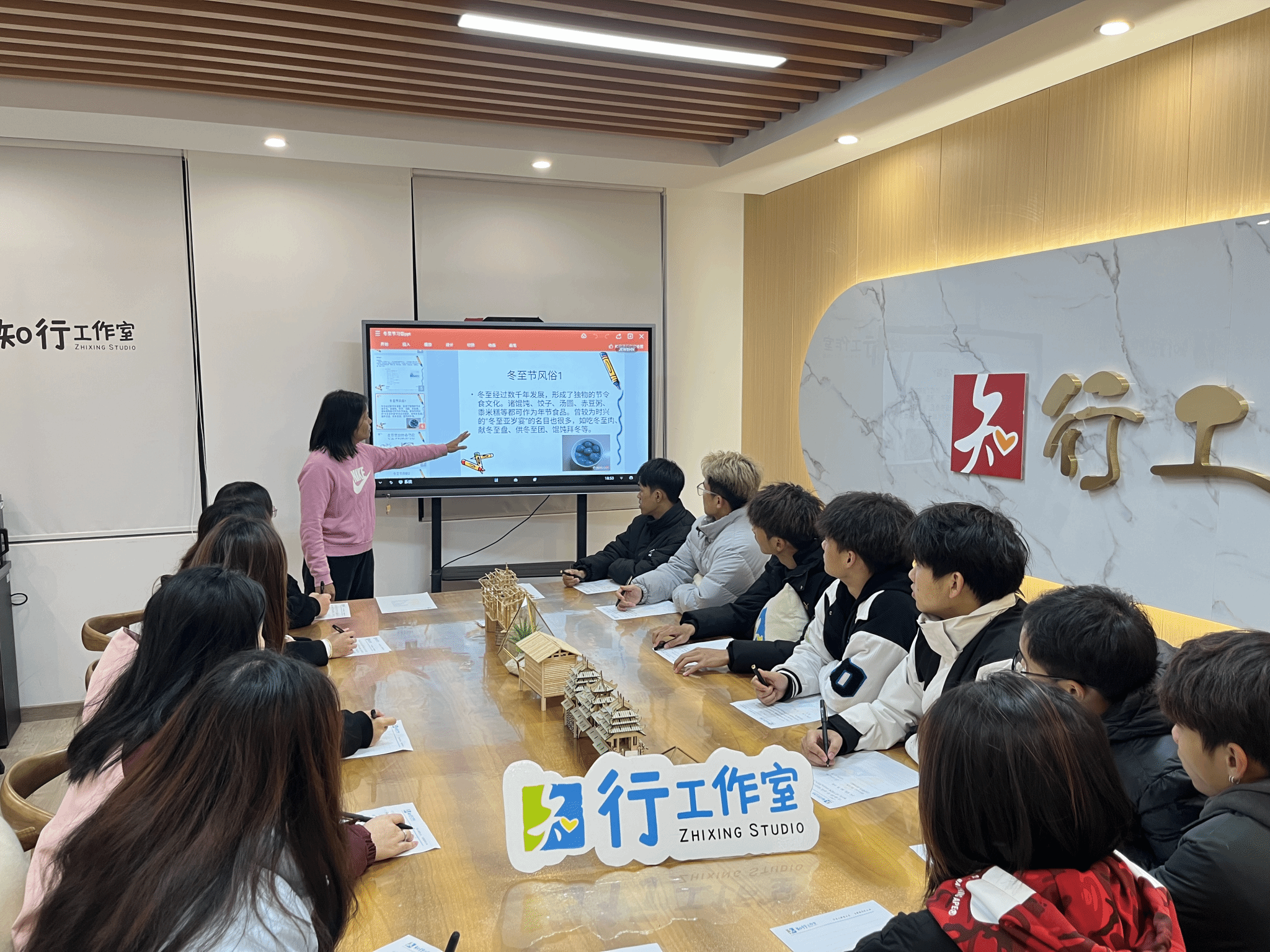 广西建院12月22日讯(市政与交通学院 文/梁金来 李姿蓉 图/梁新瑜)天时人事日相催,冬至阳生春又来。为大力弘扬中华优秀传统文化,让同学们在学校也能感受到浓厚的传统节庆氛围,以新颖多样的形式记录冬至文化,12月22日下午,梁金来老师组织学生在知行工作室开展了以“线下共话冬至俗 线上共叙冬至暖”为主题的第41期“共话民传”微课堂。此次微课堂分线下、线上两种形式进行。线下共话冬至俗第一环节:诵诗词 享文化梁金来老师以“...