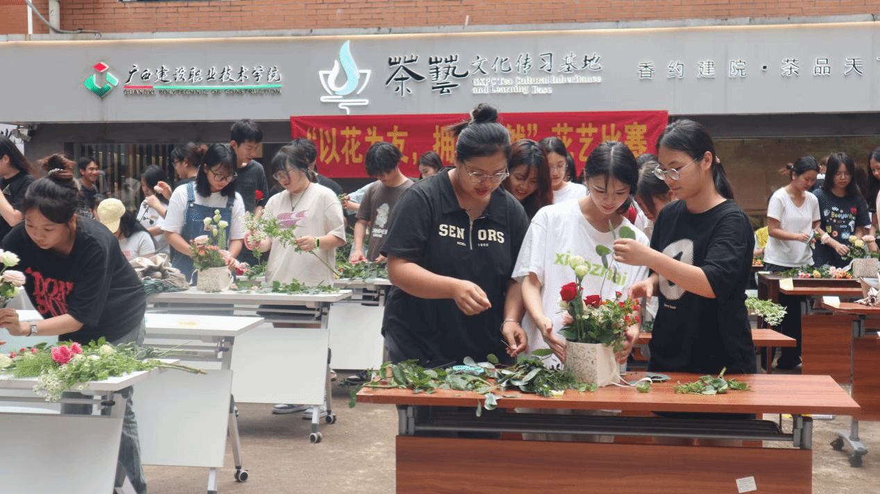 广西建院6月6日讯(管理工程学院 封炫妃)6月5日下午,学校茶艺文化传习基地联合学校宿管科开展学生社区“以花为友 拥抱生活”花艺大赛。活动共吸引了200余名学生分50组参赛。活动现场比赛中,选手们构思新奇、巧思独运,完成了一系列风格各异的花艺作品,展现了积极向上、活泼灵动的精神风貌。每个作品都充满了艺术的气息,让人们沉醉其中。作品展示本次花艺大赛旨在以花感人,以花育人,让同学们在花卉的芳香和美妙中体会花艺的魅力,...