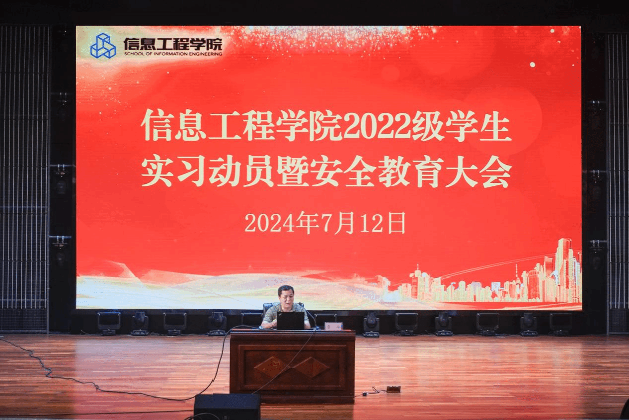 广西建院7月15日讯(信息工程学院 文/何鑫 图/黄尧)为进一步做好学生实习工作,引导学生明确实习目标,增强安全意识、岗位意识和岗位责任感,信息工程学院于2024年7月12日在学校礼堂召开2022级学生实习动员暨安全教育大会。信息工程学院学院领导、毕业班实习指导老师、带班辅导员及全体2022级学生参加了此次大会。会上,学院副院长(主持行政工作)覃平做了实习动员。他强调,实习对于学生专业成长和职业发展具有重要意义,鼓励同学们珍惜实习机会,...