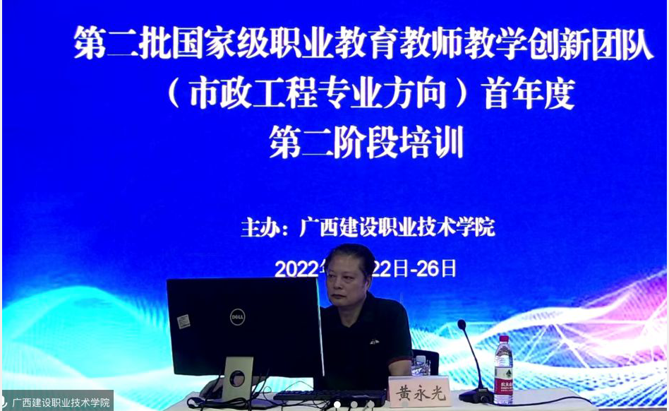 广西建院8月26日讯(文/廖路花 图/廖路花)为更好推进职业教育教师教学创新工作,第二批国家级职业教育教师教学创新团队培训在开云线上平台_开云(中国)开展。8月25日上午,我院黄永光院长做了题为《以强化应用创新导向,落地深耕产...