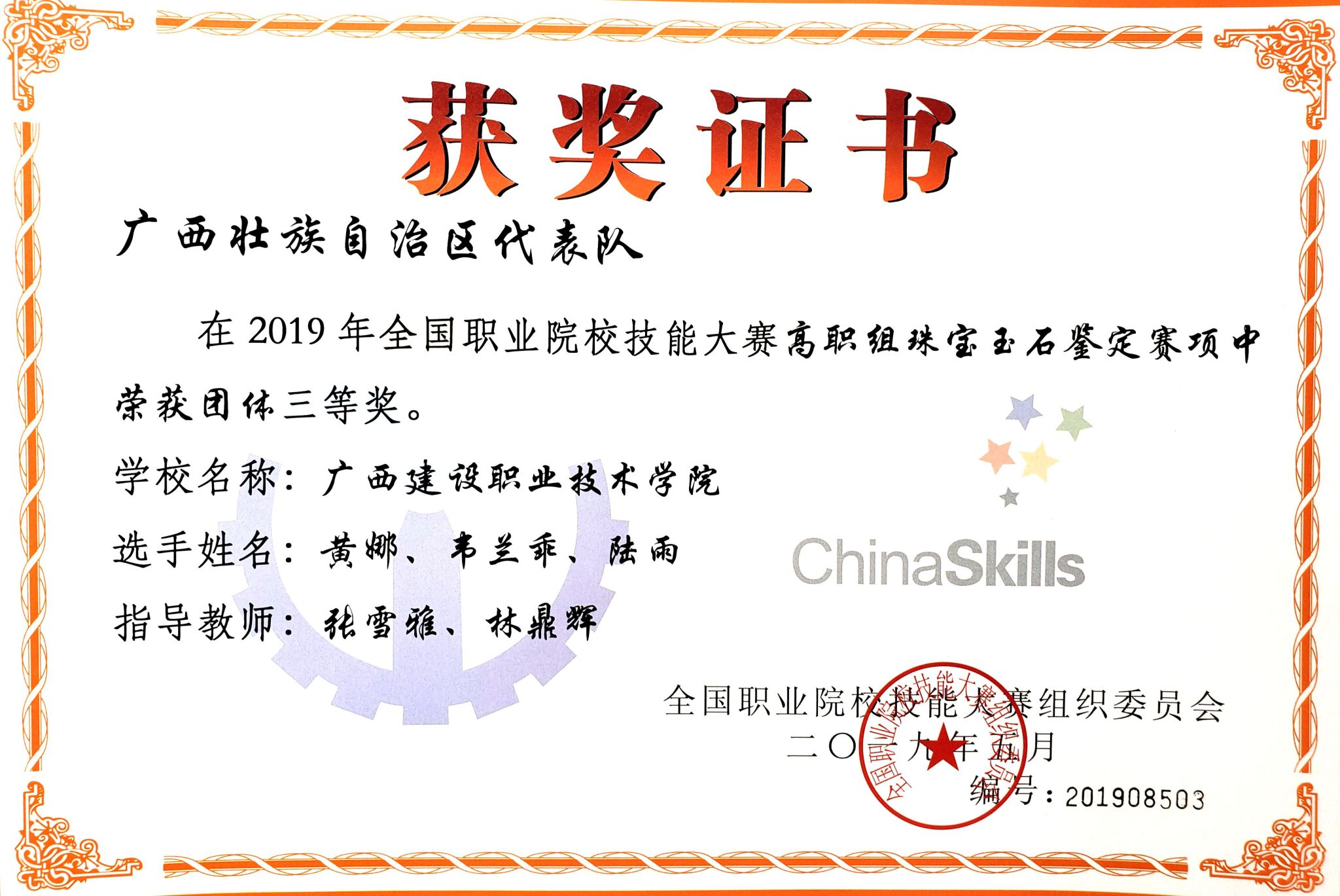 2019年全国职业院校技能大赛高职组珠宝玉石鉴定赛项团体三等奖