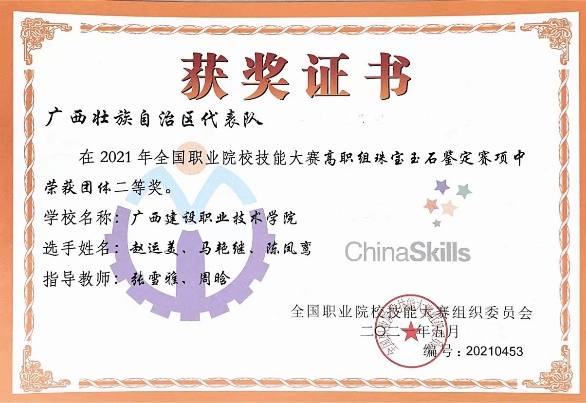 2021全国职业院校技能大赛高职组珠宝玉石鉴定赛项团体二等奖